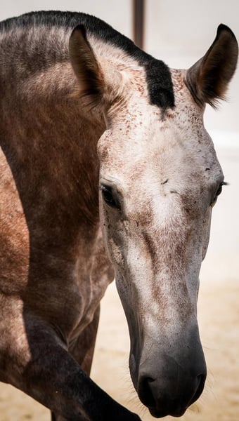 Breeding: We are pleased to introduce you to an impressive PRE red grey mare from the 2019 vintage. With a current height of 164 cm, she impresses not only with her impressive size, but also with her unique genetics. She carries a Pearl Gene, a rare and sought-after color genetics that makes her a real eye-catcher. The mare shows herself in beautiful baroque lines, which are typical for the PRE breed. Her muscular appearance, combined with elegant and expressive movements, make her an ideal choice for growers. Their gaits are fluid and harmonious. For those who are looking for a young horse that is willing to learn and grow with them, we offer the possibility to purchase the mare already ridden for an extra charge. This not only gives you a valuable horse for breeding, but also a horse that has already gained some experience in working under saddle. Finally, we would like to emphasize that this PRE red grey mare not only convinces with her external qualities, but also with her balanced and friendly nature. She is always willing to learn and cooperative, making her a wonderful choice for ambitious breeders as well as lovers of the PRE breed. Take the chance and get to know this gem better. A horse that knows how to convince in every respect with its colouring, its gaits and its character.