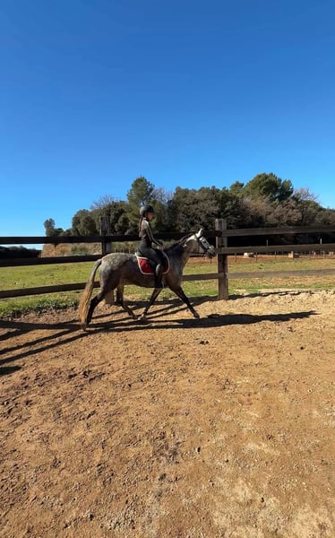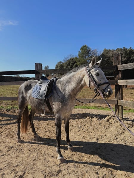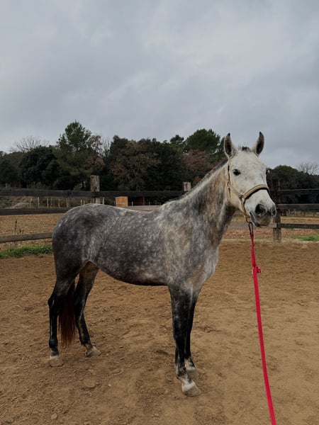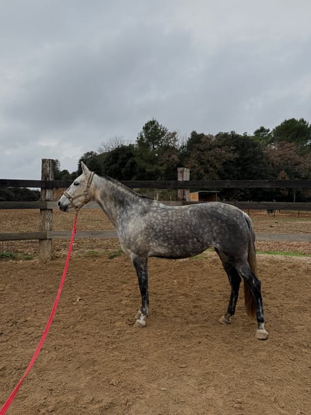 Beautiful PRE mare for sale named Triana, daughter of the champion Romero de Trujillo, with all papers in order. She is 7 years old and stands at 1.62 meters. She is known for her excellent attitude, nobility, and very good temperament. The mare is hitched to a limonera cart and is trained to ride at the three gaits and on trails, always demonstrating a calm head, balance, and ease of work. She possesses great qualities and potential, making her an excellent candidate for classical dressage or working equitation. She has never been covered by a stallion, which also makes her an interesting prospect for future breeding. Her training has been carried out in a calm and progressive manner, always respecting her character. ✔ Noble and manageable temperament ✔ Hitched to a limonera cart ✔ Trained to ride ✔ Good sporting potential ✔ All documentation in order A very versatile mare with high quality and many possibilities for leisure or competition.