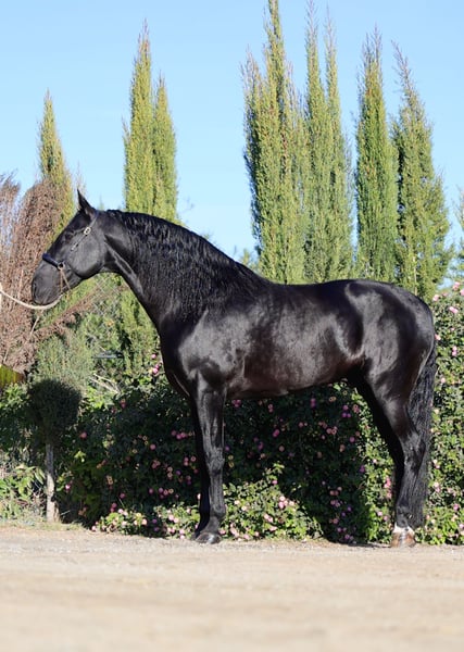 Elegant Purebred Spanish Horse with a black coat, born in 2015, exhibiting excellent presence and noble demeanor. Standing at 16.1 hh, this horse combines beauty, character, and functionality. With a solid, well-proportioned build, it is ideal for those seeking a high-quality animal for leisure and enjoyment, as it possesses very good dressage skills along with incredible nobility. This horse is suitable for anyone wanting to enjoy a relaxed ride on a horse that captivates with its extraordinary beauty and excellent handling. This horse has been well handled, demonstrating a calm and confident attitude under saddle. Additionally, its balanced temperament and good nature make it easy to manage and train, suitable for experienced riders or those in training. If you are looking for a horse with presence, a good disposition, and potential for leisure riding, this specimen is an excellent choice. Feel free to contact us for more information and to arrange a visit. It is available for testing to verify its dressage ability and noble temperament.