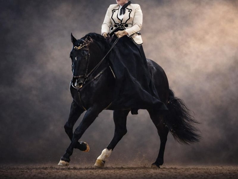 Deze prachtige zwarte Spaanse paard biedt een geweldige kans voor wie op zoek is naar een paard met een indrukwekkend uiterlijk en een ongeëvenaard karakter. Ideaal om te leren dressuur, haute école en te genieten in elke situatie met een betrouwbaar, zelfverzekerd paard dat je zeker niet onopgemerkt zal laten. Deze Spaanse ruin heeft een compacte, harmonieuze morfologie en is een uitstekend voorbeeld van het ideale Spaanse paard, met een spectaculaire kleur van de vacht. Onder het zadel is hij rustig en comfortabel, en toont hij een bereidwillige geest voor werk en een groot hart dat altijd klaarstaat om zijn beste kant te laten zien. Hij voert zijgangen uit, pirouettes, piaffe, passage en Spaanse pas. Als je op zoek bent naar een paard om van te genieten, kan deze zwarte schoonheid de perfecte metgezel voor jou zijn.