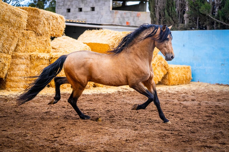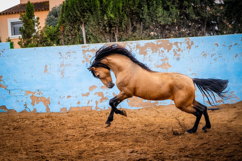 Prachtvoller und stolzer Zuchthengst mit langer Mähne bietet seine Samen an und wird ebenso verkauft.Geritten wird er in allen 3 Grundgangarten im Gelände und auf dem Platz. Er ist kein Anfänger Pferd aber brav im Umgang. Er verebt seine Schönheit und schwungvolle Bewegungen. Seine Farbanalyse lautet: ggEeAACCRppchchzz / Mehr Infos auf Anfrage! *Alle visuellen Inhalte, einschließlich Fotos und Videos, die von Caballoria S.L. präsentiert werden, sind urheberrechtlich geschützt. Dies bedeutet, dass die Vervielfältigung, Verbreitung, Anzeige oder jegliche Nutzung dieser Materialien ohne die ausdrückliche schriftliche Zustimmung von Caballoria S.L. strengstens untersagt ist. Das Urheberrechtsgesetz stellt sicher, dass die Urheber die Kontrolle über ihre Werke behalten und für deren Nutzung gebührend anerkannt und entschädigt werden.
