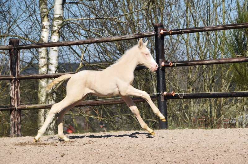 Atento ist ein atemberaubender cremello PRE-Hengstfohlen mit seltener Färbung, korrekter Konformation und hervorragenden Blutlinien, was ihn zu einem wertvollen Kandidaten sowohl für den Sport als auch für die Zucht macht. Seine Mutter, Atenta VLR, ist eine bewährte Zuchtstute und Turnierpferd. Sie hat zweimal in Belgien an morphologischen Wettbewerben teilgenommen und dabei zwei Silbermedaillen gewonnen, was ihre Qualität und den Rassetyp unterstreicht. Sein Vater, Efusivo A, bringt eine kraftvolle genetische Grundlage mit. Er ist der Enkel zweier Calificado-Pferde, der legendären Corinta und Romero XVIII. Efusivo ist bekannt dafür, Fohlen mit ausdrucksvoller Bewegung, exzellenter Struktur und edlem Temperament zu züchten. Die seltene cremello Farbe von Atento macht ihn zu einem attraktiven Kandidaten für Züchter, die verdünnte Gene in ein PRE-Zuchtprogramm einführen möchten, ohne dabei Qualität oder Typ zu opfern. Wir hätten ihn gerne behalten, haben uns jedoch entschieden, seine Halbschwestern sowohl von der Seite seines Vaters als auch seiner Mutter zu behalten, weshalb Atento für das richtige Zuhause verfügbar ist. Er wird regelmäßig gehandhabt, sozialisiert und entwickelt eine ruhige, intelligente und neugierige Natur. Eine einzigartige Gelegenheit, ein Fohlen zu besitzen, das Farbe, Qualität und bewährte Abstammung kombiniert. Atento ist vollständig ANCCE-registriert, hat seine Carta und genetische Tests in ANCCE durchgeführt.