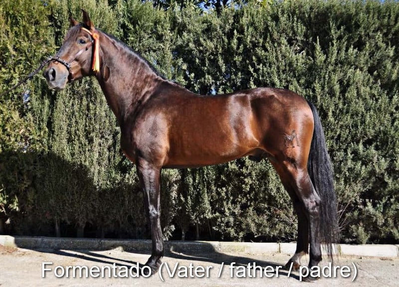 lieber Charakter, roh, steht draußen, spezielle Farbe, gute Bewegungen und Abstammung, klein, Abstammung: Yeguada Militar, Yeguada Puerta Alta, hat mehrere qualifizierte Vorfahren www.elegante-andalusier.com