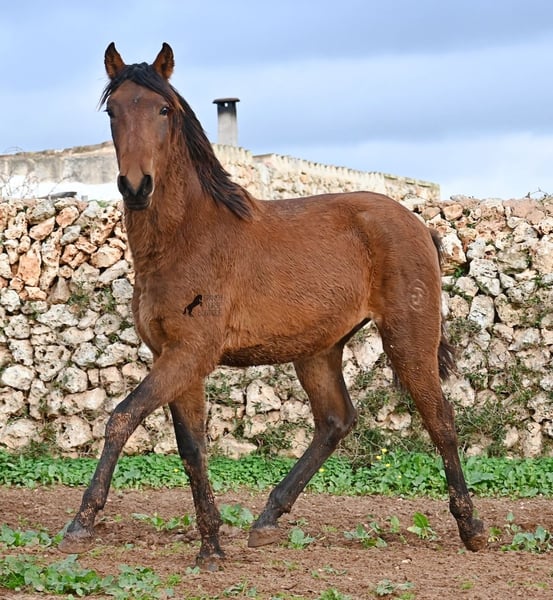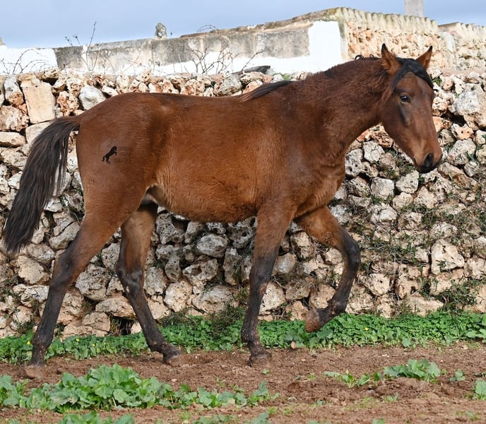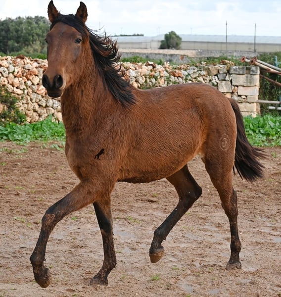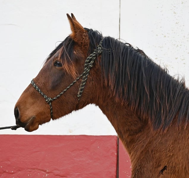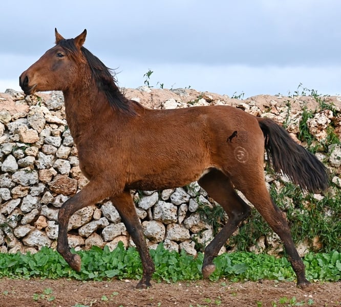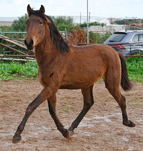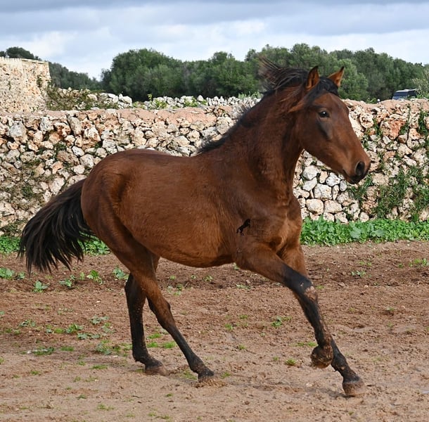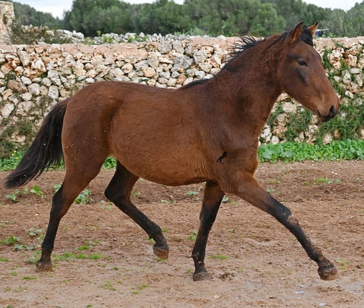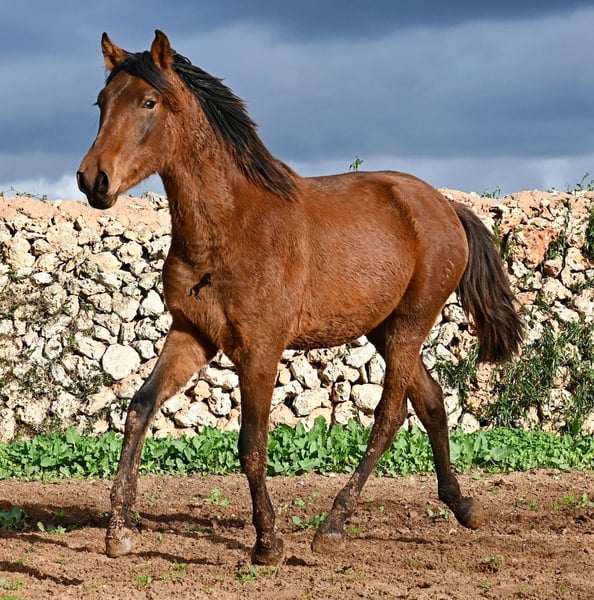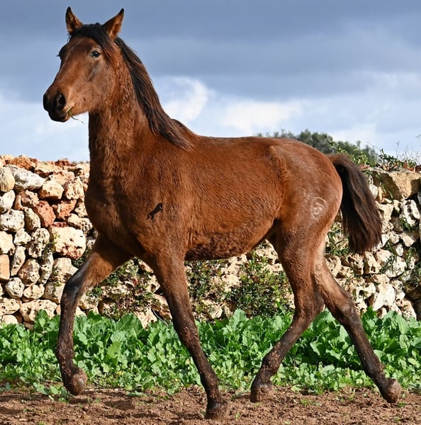 Noch ist dieser 2024 geborene PRE Hengst (Andalusier mit Rassenachweis der ANCCE), ein süßer Schatz. Aber ers gibt schon Momente, wo er sich stolz in der Bewegung präsentiert und zeigt, was er für ein schicker Kerl wird ;) Väterlicherseits hat er viel Escalera-Blut in der Abstammung und daher kommt bestimmt auch sein menschenfreundlicher, offener Charakter. Denn immer wieder kam er neugierig zu mir im Freilauf, um kurz Hallo zu sagen. Der Züchter legt großen Wert darauf, dass die Hengste bis mindestens 3 Jahre in der Hengstherde aufwachsen. So kommt es, dass er bei der Regensaison auf Menorca plüschiges Fell und etwas Panier im Fell hat, aber nur ein Indiz auf das natürliche Aufwachsen ;) Der Youngster ist sehr neugierig und aufgeschlossen und hat keinerlei Hengstmanieren, wobei er noch komplett roh ist. Er hat eine schöne Bewegung und sein zu erwartendes Endmaß wird leicht über 160cm liegen. Für all jene die keinen Hengst halten können, besteht natürlich auch die Option der Kastration vor Ort. Sein Standort ist Menorca. Videos und Abstammung gerne auf Anfrage. Gerne organisiere ich vor Ort eine AKU, Beritt, Kastration, Transport oder auch ihre Reise, sollten Sie persönlich zum Anschauen kommen. Details dazu gerne auf meiner Seite oder im Gespräch. Saludos aus Spanien