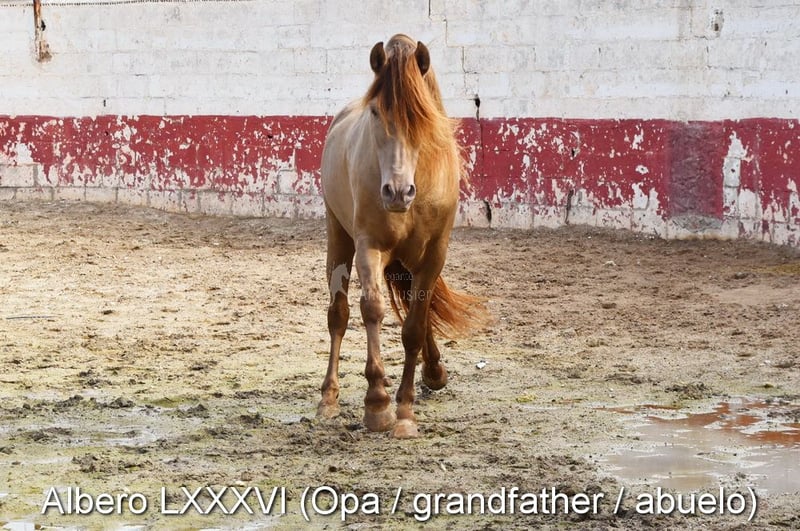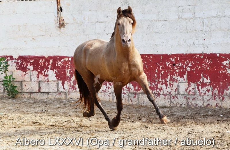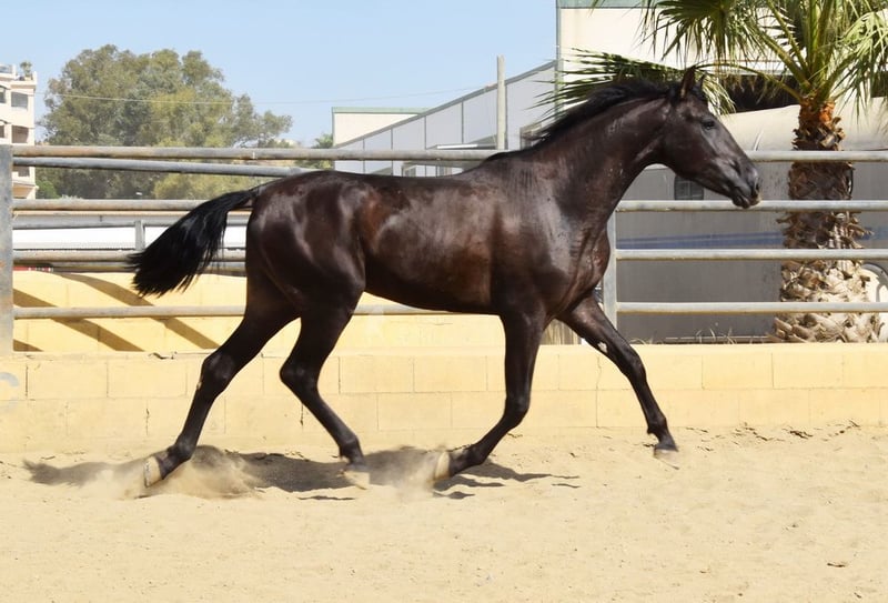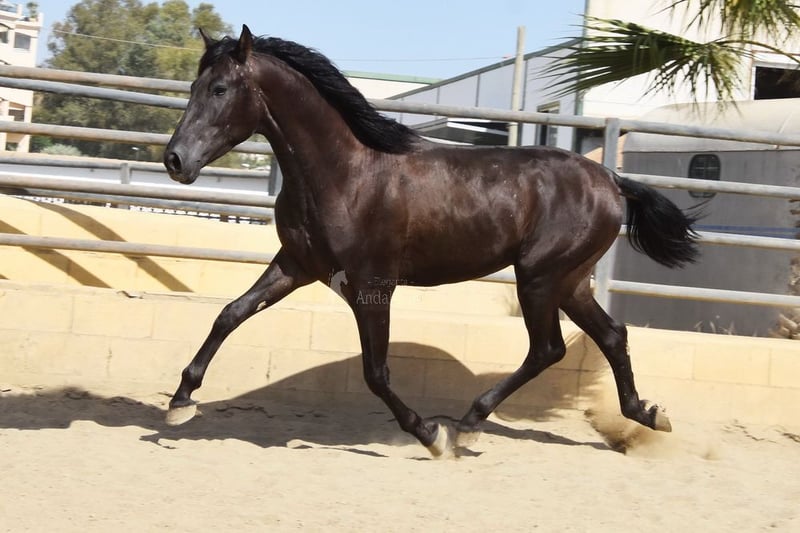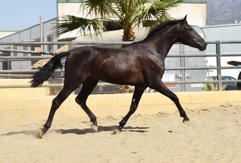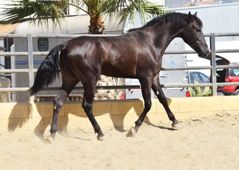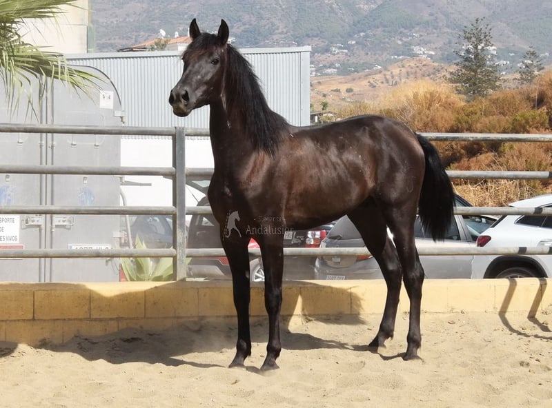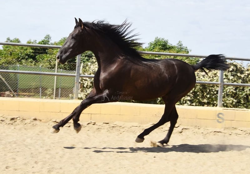 dear character, untrained, recently stabled, tall, good movements, black with PRL gene, pedigree: Manuel Fernandez Jimena, Paco Marti www.elegante-andalusier.com