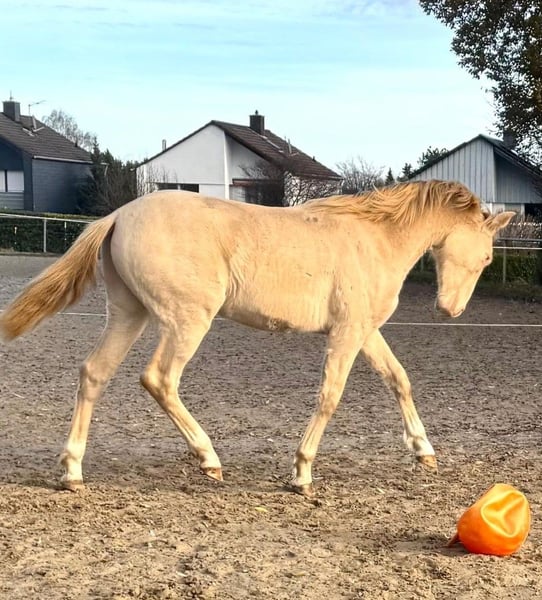 This adorable young PRE stallion is searching for his forever human. He is 1.5 years old, with a very sweet, affectionate, and open personality, and is expected to mature to approximately 16.1–16.2 hh. He already knows the basics of foal training and currently lives in a herd with other foals, where he feels very comfortable and gets along well with everyone. He is also familiar with loading into a trailer and the farrier, always behaving kindly during these activities. Even during walks along the road, he is perfectly well-behaved. His favorite activities include long cuddling sessions, and he simply wants to be involved in everything. Truly a little treasure. He is growing into a confident and brave young stallion, with a future full of possibilities—whether in dressage, working equitation, shows, or simply as a leisure partner. He comes from a reputable Spanish breeding farm and was purchased as a weanling and imported to Germany. Unfortunately, due to personal reasons, the owner has made the heartfelt decision to find him a new home. Her top priority is that he finds a wonderful environment where he receives as much love as he has been given by her. Since we know the breeder personally and are familiar with his handsome sire, we can gladly send videos of his upbringing location and of his father, so you can see the direction in which this little one might develop. A meeting and transportation can be arranged. Location: 51515 Kürten, Germany