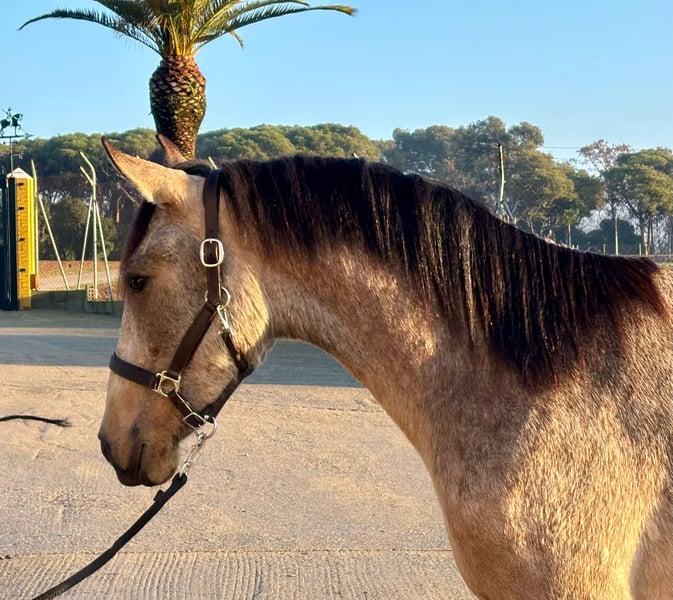 Dieser schicke PRE Junghengst sucht nach seinem Herzensmenschen. Charakterlich ist er altersentsprechend noch etwas zurückhaltend, jedoch bereits jetzt sehr höflich und lieb im Umgang. Er wird dieses Jahr 3 Jahre alt und ist aktuell ca. 1,61 m groß. Ausgewachsen schätzen wir ihn auf ca. 1,63-1,65 m. Er kommt frisch aus seiner Junghengstherde und lernt gerade das Fohlen ABC. In Zukunft können wir ihn uns in vielen Bereichen vorstellen, sowohl in der Dressur, für Working-Equitation, für die Show, in der Zucht oder einfach als Freizeitpartner. Seine Kindheit konnte er in einer großen Herde aus Stuten und ihren Fohlen auf der Weide verbringen und mit ca. 8 Monaten wurde er von seiner Mutter getrennt und konnte sich in einer Junghengstherde ausleben. Nun wurde er eingestallt, sodass er die Box auch schon kennt. Er hat bereits Röntgenbilder ohne Befund. Standort: Barcelona, Spanien, ein Kennenlernen in Spanien und der Transport kann problemlos organisiert werden