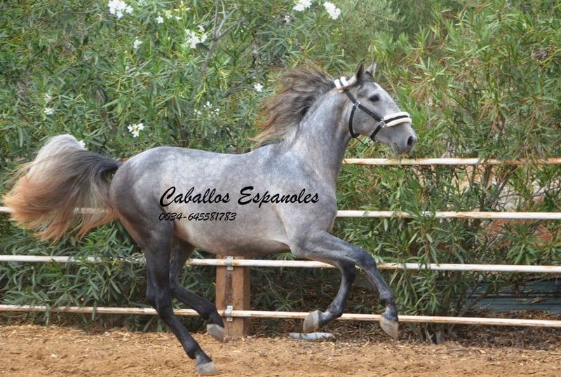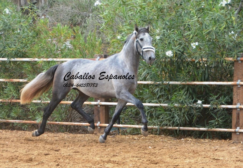 Ce bel étalon PRE cherche son nouveau compagnon. Ce jeune homme est harmonieusement construit, dans un cadre moyen, et repose sur des bases solides. Il a trois très bonnes allures. Il connaît désormais l'ABC des poulains et a déjà fait un peu de longe. C'est un jeune étalon formidable et sympathique qui a beaucoup de potentiel en lui. Le cheval est vendu sous contrat. Il peut volontiers rester en pension chez nous. Un bilan de santé sera organisé à court terme. Transport international.
