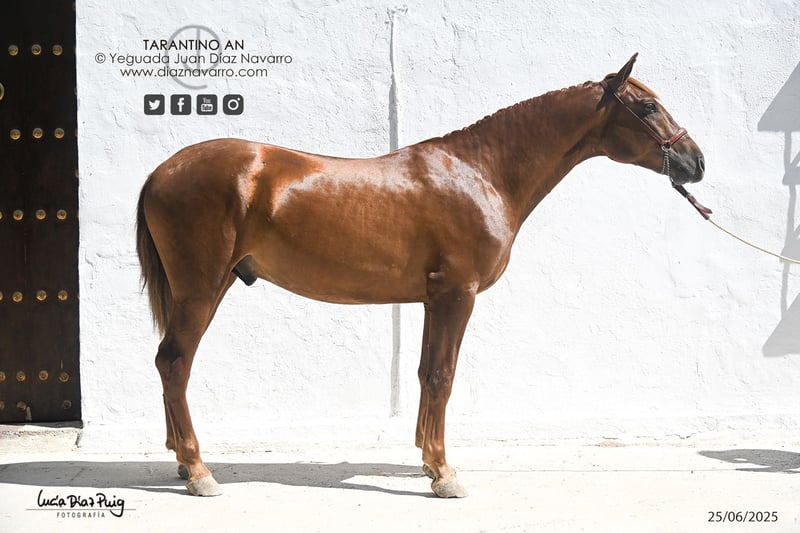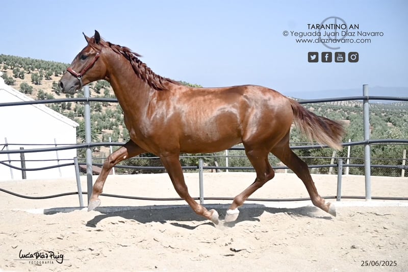 Opportunity to acquire a beautiful foal! We are offering a magnificent purebred Spanish horse (PRE), unbroken, born in 2023, for sale. With a rich chestnut coat, his beauty and elegance stand out in any setting. Standing approximately 15.7 hands high, he is well-proportioned and ideal for breeding or high-level equestrian activities such as working equitation. This horse combines beauty, a very good temperament, and potential, making him an excellent investment for breeders or horse enthusiasts. His sire, Mendigo VI del hierro de Valdeolivas, is a son of Duiker Mor and grandson of Trovador IX; his dam is a daughter of Hebreo Al Ándalus. Lineage: Duiker Mor, Ermitaño III (Elite), Trovador IX, Remache XIII, Yaco II, Chileno IV, Hebreo Al Ándalus. Valdeolivas, Sánchez Barbudo, Granda, Escalera, Marín García, Aquilino Moya, Martínez Boloix. For more information and details, please do not hesitate to contact us.