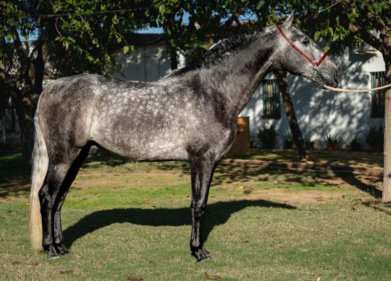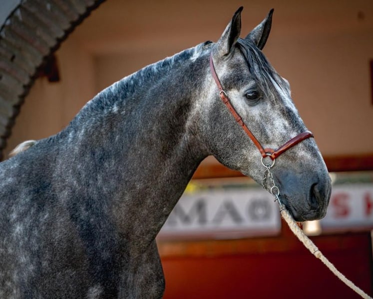 Lovely young stallion PRE with quality for dressage for his innate skills. He is learning very quickly under saddle and his excellent behavior is showing off a beautiful way to feel that he has potential for higher levels. He is doing the basic work with transitions.