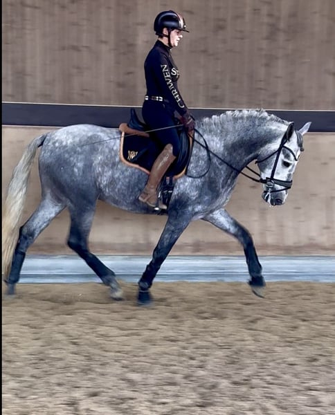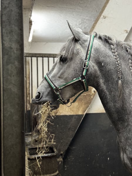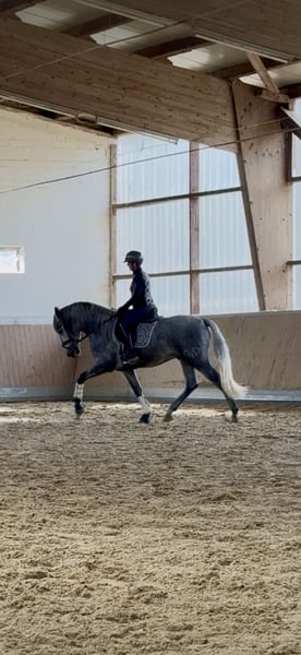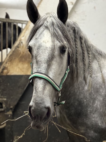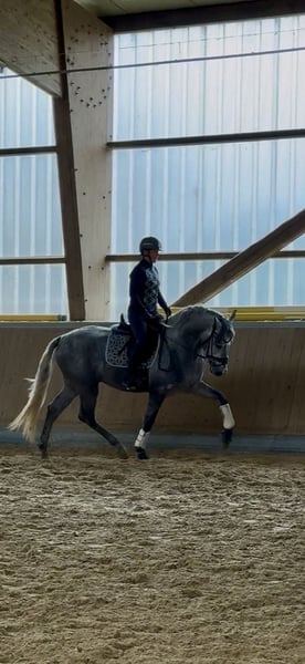 Tejon is a 3-year-old PRE stallion currently being broken in under saddle. He is a lovable, calm horse with a friendly and curious nature. Working with Tejon is a great pleasure, whether on the ground or riding. He has a very good walk and a spacious, expressive canter. In trot, we are focusing on balance, rhythm, and relaxation, as is typical for a young horse at this stage. This raw diamond has a lot of movement potential, combined with seat comfort and an exceptionally sweet character. At the moment, I ride him lightly three times a week for about 20 minutes each session. Once a month, I train my horses with André Keus, a certified equine trainer, to ensure that his training progresses appropriately according to the age and the FEI development scale. Tejon loves human interaction and learns very quickly. He has 18 X-ray images taken according to German standards, all without findings. The photos show that I initially backed him in Spain at my friends’ stud farm, and since early October, he has been being further trained at our riding facility in Emstal, in accordance with his age. This is my passion and joy! I offer test rides only during a lesson I conduct myself, valued at €75, as he is still very young. Appointments are scheduled at intervals that are manageable for him. In cooperation with our veterinary clinic, castration is possible, along with post-operative care and subsequent training. We also offer transportation of the horse to its new home. For serious inquiries, please contact me only via WhatsApp at 0171-3776471.