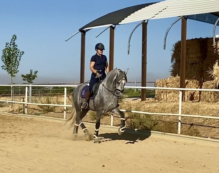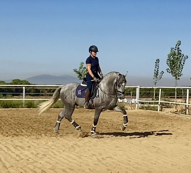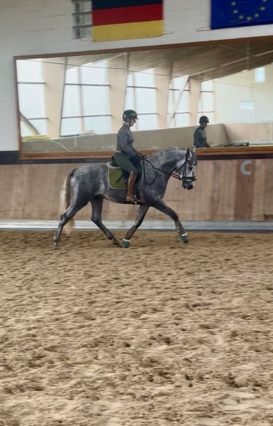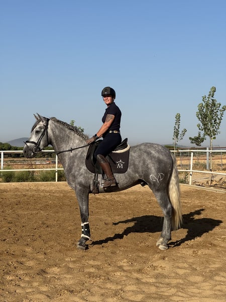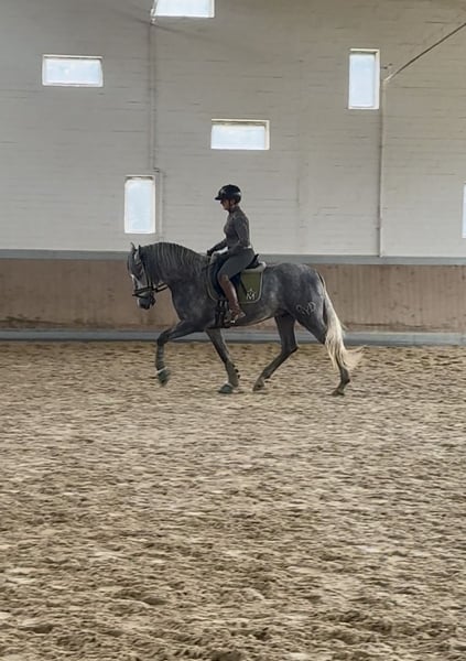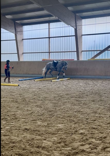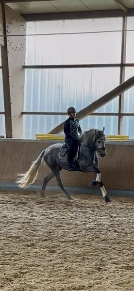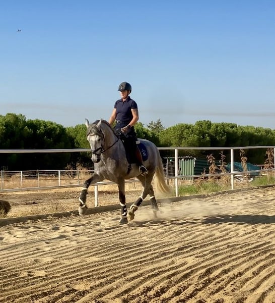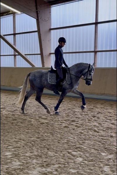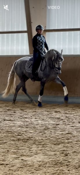 Tejon ist ein 3j PRE Hengst, derzeit in den GGA angeritten. Er ist ein liebenswertes, ruhiges Pferd im Umgang, stets neugierig und offen. Es macht sehr viel Freude mit Tejon zu arbeiten, egal ob vom Boden oder beim reiten. Tejon bringt einen sehr guten Schritt mit, hat einen raumgreifenden Galopp. Im Trab arbeiten wir an der Balance,Takt u. Losgelassenheit wie es für einen solchen Youngster normal ist. Dieser Rohdiamant bringt viel Bewegungspotential mit, gepaart mit Sitzcomfort und super lieben Charakter . Zur Zeit reite ich ihn 3x in der Woche leichte 20 Minuten. 1x im Monat trainiere ich meine Pferde mit André Keus, Pferdewirtschaftsmeister damit die Ausbildung immer altersentsprechend nach der Skala der Ausbildung (FN) erfolgt. Tejon liebt es mit dem Menschen umzugehen u. lernt sehr schnell. Er hat 18 Röntgenbilder nach deutschem Standard ohne Befund. Auf den Bildern seht Ihr, dass ich ihn in Spanien bei meinen Freunden auf dem Gestüt selbst angeritten habe und er nun seid Anfang Okt. Bei uns im Reithaus am Emstal altersgemäß weiter ausgebildet wird. Das ist meine Freude u. Passion! Probereiten biete ich nur in einer von mir geführten Unterrichtsstunde im Wert von 75 € an, da es sich hier um ein sehr junges Pferd handelt. Termine mache ich in zeitlichen Abständen so dass es für das Pferd machbar ist. In Kooperation mit unserer Tierklinik ist eine Kastration möglich, als auch die Nachsorge und das anschließende antrainieren.. Gleichzeitig bieten wir unseren Kunden den Transport des Pferdes ins neue zu Hause an. Bei ernsthaftem Interesse bitte Anfragen nur per WhatsApp 0171-3776471