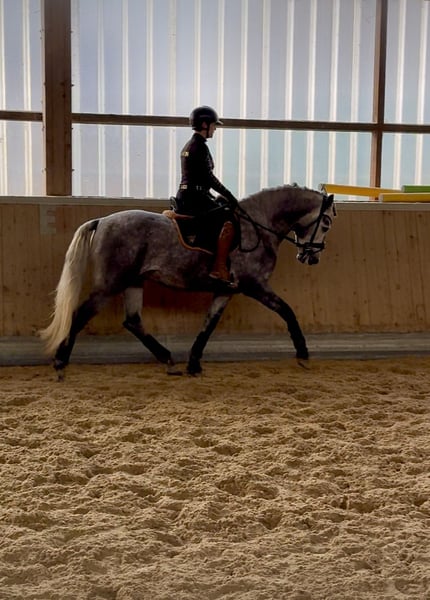 Tejon ist ein 3j PRE Hengst, derzeit in den GGA angeritten. Er ist ein liebenswertes, ruhiges Pferd im Umgang, stets neugierig und offen. Tejon ist Menschen bezogen und benötigt seine Kuscheleingeiten. Es macht sehr viel Freude mit Tejon zu arbeiten, egal ob vom Boden oder beim reiten. Tejon bringt einen sehr guten Schritt mit, hat einen raumgreifenden Bergauf Galopp. Im Trab arbeiten wir an der Balance,Takt u. Losgelassenheit wie es für einen solchen Youngster normal ist. Dieser Rohdiamant bringt viel Bewegungspotential mit, gepaart mit Sitzcomfort und super lieben Charakter . Zur Zeit reite ich ihn 3x in der Woche leichte 20 Minuten. 1x im Monat trainiere ich meine Pferde mit André Keus, Pferdewirtschaftsmeister damit die Ausbildung immer altersentsprechend nach der Skala der Ausbildung (FN) erfolgt. Tejon liebt es mit dem Menschen umzugehen u. lernt sehr schnell. Er hat 18 Röntgenbilder nach deutschem Standard ohne Befund. Auf den Bildern seht Ihr, dass ich ihn in Spanien bei meinen Freunden auf dem Gestüt selbst angeritten habe und er nun seid Anfang Okt. Bei uns im Reithaus am Emstal altersgemäß weiter ausgebildet wird. Das ist meine Freude u. Passion! Probereiten biete ich nur in einer von mir geführten Unterrichtsstunde im Wert von 75 € an, da es sich hier um ein sehr junges Pferd handelt. Termine mache ich in zeitlichen Abständen so dass es für das Pferd machbar ist. In Kooperation mit unserer Tierklinik ist eine Kastration möglich, als auch die Nachsorge und das anschließende antrainieren.. Gleichzeitig bieten wir unseren Kunden den Transport des Pferdes ins neue zu Hause an. Bei ernsthaftem Interesse bitte Anfragen nur per WhatsApp 0171-3776471