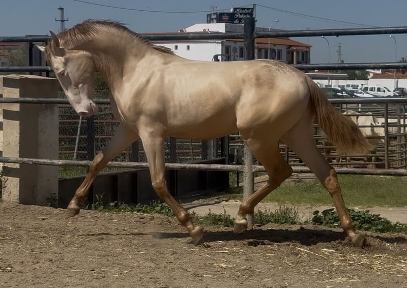For sale: spectacular PRE stallion! We present a magnificent specimen of Purebred Spanish Horse, born in 2023. This impressive perlino horse stands out for its beauty and elegance, with a height of 168 cm that makes it a majestic animal. Its baroque conformation highlights its stature and nobility, ideal for those seeking an exceptional partner for both dressage and exhibitions. This stallion is an excellent opportunity for breeders and enthusiasts of the breed who wish to incorporate a horse with great potential into their herd. Its balanced temperament and friendly character make it suitable for different disciplines. Don't miss the chance to meet this magnificent specimen. For more information and to arrange a visit, please do not hesitate to contact us. Your future companion is waiting for you!
