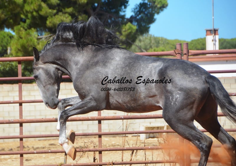 De jonge hengst heeft veel uitstraling en hoewel hij niet de grootste is, valt hij zeker op. Hij is aangezad en is al eens in het terrein geweest. Hij beschikt over drie goede, expressieve basisgangen. De jonge ruin is altijd vrolijk en geïnteresseerd in nieuwe dingen. In de omgang is hij braaf en goed opgevoed. Afstamming: Marín García, Benito Sierra Het paard wordt in opdracht verkocht. Hij kan bij ons blijven onder het zadel. De keuring (AKU) kan op korte termijn geregeld worden. Internationale verzending mogelijk.