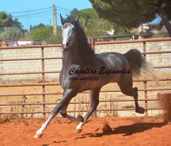 Der junge Hengst hat sehr viel Ausdruck und obwohl er nicht der Größte ist, ist er nicht zu übersehen. Er ist angeritten und war auch schon mal im Gelände, Er ist mit drei guten, ausdrucksstarken Grundgangarten ausgestattet. Der junge Mann ist immer fröhlich und an neuen Dingen interessiert. Im Umgang ist er brav und gut erzogen. Abstammung: Marín García, Benito Sierra Das Pferd wird im Auftrag verkauft. Sie kann bei uns bin Beritt bleiben. AKU kann kurzfristig organisiert werden. Internationaler Transport.