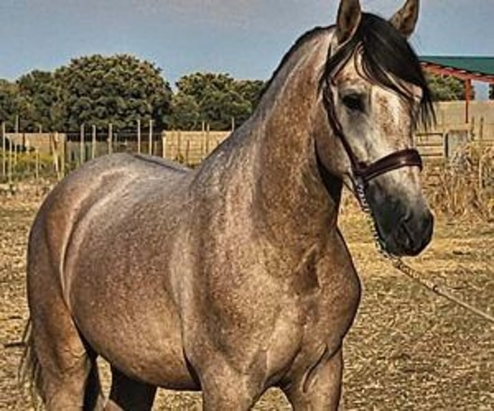 almo nella carriera, sicuro all'esterno: un giovane cavallo che sa già dove sta andando Questo cavallo ha qualcosa che è evidente dal primo contatto: dolcezza. È giovane, sì, ma il suo temperamento è così sereno e piacevole che ti fa sentire subito a tuo agio. Ha lo sguardo chiaro e costante dei cavalli ben addestrati che, nonostante la loro età, sanno già come comportarsi. È un elegante grigio vino, con una bella struttura e belle ghette. Ha già padroneggiato tutti i movimenti laterali con facilità. E non li esegue solo: li fa bene, con fluidità, senza tensione o resistenza. All'aperto, mantiene lo stesso atteggiamento: calmo, costante, affidabile. Va da solo o con qualcuno, sempre disponibile e concentrato. Non è un cavallo che ha bisogno di una gestione costante: segue, ascolta e si gode la passeggiata con te. Un'opzione superba per chi cerca un giovane cavallo già funzionale, ben avviato, con testa, cuore... e la voglia di condividere. Presso IberHorse, selezioniamo con cura cavalli che hanno davvero qualcosa da offrire al loro futuro cavaliere. Se questo grigio ti ha colpito, prenota una chiamata e parliamone.