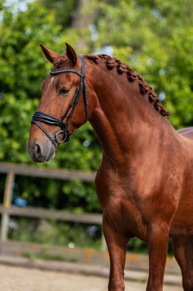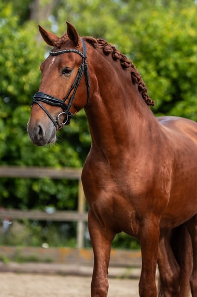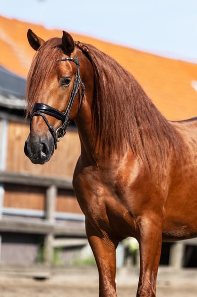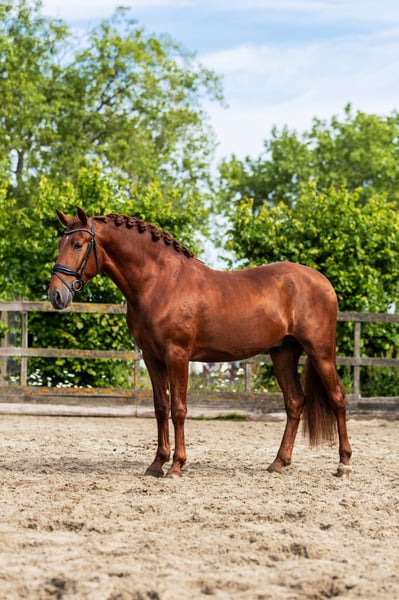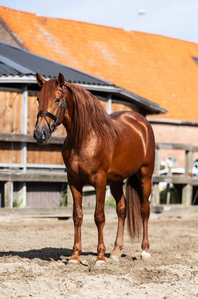 Soul on Fire 3,5-jarige PRE hengst, 164 cm, elegant tot in de laatste vezel en klaar om je hart te veroveren. Deze vos hengst brengt precies mee wat tegenwoordig telt: Aanwezigheid, persoonlijkheid – en potentieel. Geen wild tempo, geen snelle druk. Deze jongeling wordt voorzichtig ingereden. Hij toont zich dag na dag nieuwsgierig, gevoelig en met een innerlijke rust die onder de huid gaat. Korte feiten: • Opleiding: Voorzichtig ingereden, nuchter en helder van geest • Karakter: Slim, mensgericht, gemakkelijk in de omgang • AKU: Vers gemaakt inclusief volledige röntgenfoto's Omdat paarden zoals hij niet gezocht, maar gevonden worden. Fundi de Acedo is niet alleen een uitzonderlijk mooi en getalenteerd jong hengst, maar ook een echte schat in de dagelijkse omgang. Hij is totaal kindvriendelijk en zoekt de nabijheid van mensen – altijd bereid voor een klein aaitje of wat knuffelen. Ook in de dagelijkse routine laat hij zich van zijn beste kant zien: Bij het poetsen staat hij ontspannen en geniet van de aandacht, bij het zadelen en opstijgen blijft hij rustig en ongecompliceerd. Zelfs bij de smid toont hij zijn zenuwensterkte en laat hij braaf zijn hoeven doen. Vrachtwagen rijden kent hij ook en beheerst dat ook met zelfvertrouwen. Met een indrukwekkende genetische lijn, diep geworteld in de traditionele fokkerij van het stamboek Acedo. Zijn afstamming verenigt enkele van de beste lijnen van de PRE-fokkerij met bewezen prestaties, type en elegantie. Vaderlijn (vaderlijk): Zijn vader Matador HAB is afstammend van Halcon XLIII, een zoon van de bekende Torrero XI, die via de legendarische Entendido XX een lijn voert die bekend staat om zijn expressiviteit en barok type. De moederlijn leidt via Finesa II en Jumilla I naar Vinatero II, een van de dragende lijnen van het klassieke Spaanse paard. Moederlijn (moederlijk): Zijn moeder Bimba de Acedo is een dochter van de edele merrie Guinea HB, die zelf teruggaat op Amado XXXVII – een krachtige zwarte hengst die via Jerez XV inzet op sterke bewegingen en aanwezigheid. De moederstam leidt verder via Divorciada en Epon de Vale naar Repompo, bekend om zijn zeldzame kleur (Perlino-drager) en genetische diversiteit.