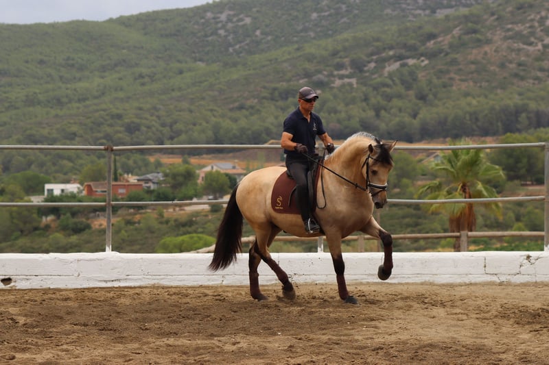 Youngster of pure Spanish breed in buckskin color, a superb mover suitable for future dressage competitions. He possesses innate talent that could be developed to higher levels with excellent training in the future.