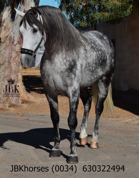 Dieser prachtvolle PRE Hengst aus dem Gestüt El Ancla wurde am 28.02.2021 geboren. Er ist ein sehr großes Exemplar seiner Rasse, und steht aber dennoch im barocken Typ. Valenciano überzeugt nicht nur mit seinem tollen Gangwerk, sondern auch mit seinem gelassenen Charakter. Ein absolut liebenswertes Pferd, das sehr gut erzogen ist und überhaupt nichts verkehrt macht. Mit Duque CXIII aus der Yeguada Las Arenas und Educado X aus der Guardiola Zucht haben wir in seiner Blutlinie 2 Elite Hengste der Rasse vertreten. Das spricht für Qualität und spiegelt sich auch in seinen Röntgenbildern wieder. 10 an der Zahl ohne Befund, aktuell vom Oktober 2025. Weitere hochwertige Exemplare aus der Bohorquez, El Ancal und die Guardiola Zucht runden das Rassebild perfekt ab.