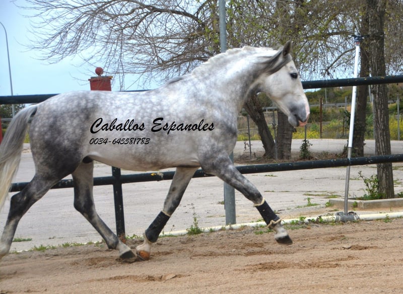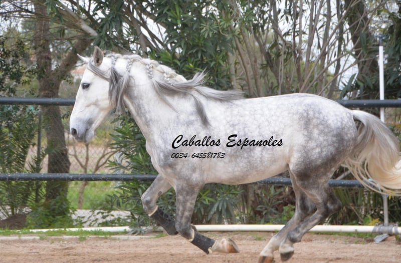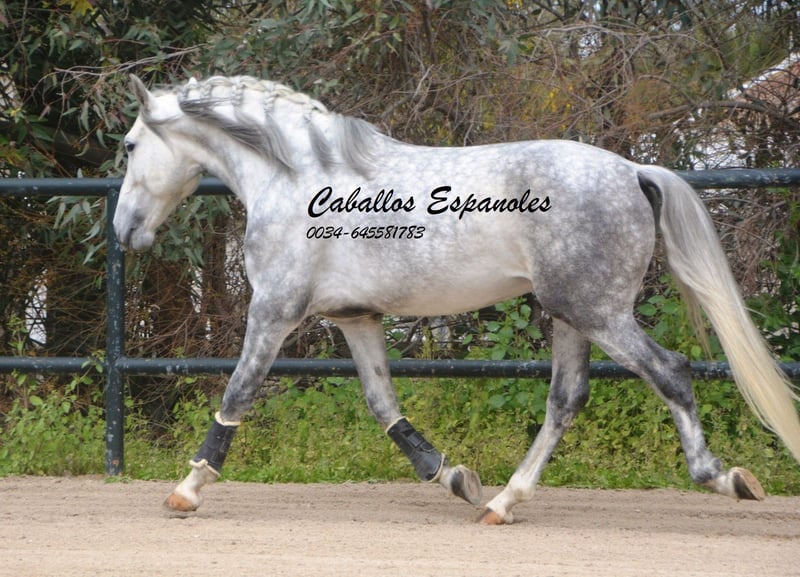 This beautiful PRE stallion comes in a classic, baroque appearance. He has correct conformation and is harmoniously built. The young man is very well-behaved and affectionate in handling. He is under saddle and calmly goes about his work even in the rain and with dogs around. The stallion is solidly ridden in the basic gaits. With appropriate training, he is sure to shine in dressage or working equitation. Pedigree: Bohórquez, Yeguada Militar The horse is being sold on consignment. He can remain in training with us if desired. A pre-purchase exam will be organized shortly. International transport available.