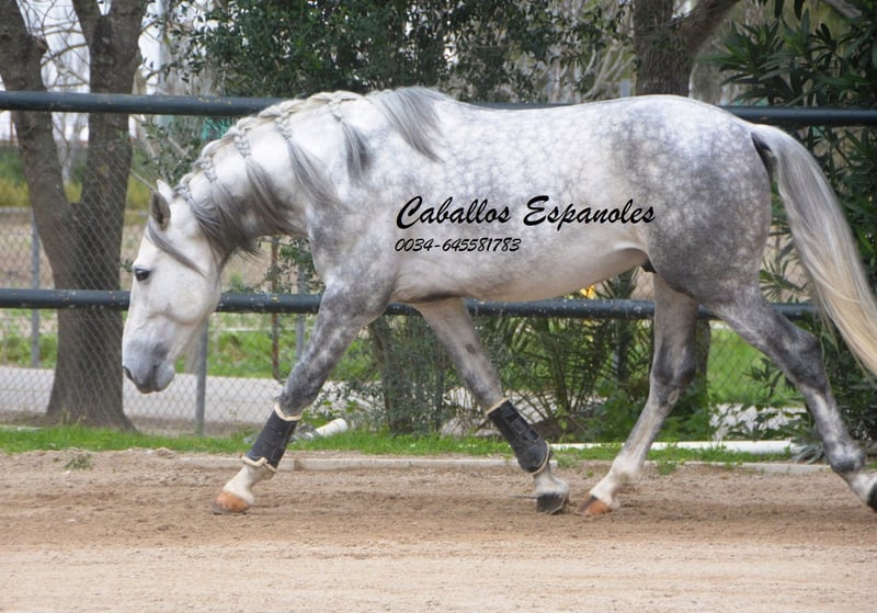 Ten piękny ogier PRE prezentuje się w klasycznym, barokowym stylu. Posiada poprawną budowę i jest harmonijnie zbudowany. Młody koń jest bardzo grzeczny i przytulny w obejściu. Jest zajeżdżony i spokojnie pracuje nawet w deszczu i w obecności psów. Ogier jest solidnie wyszkolony w podstawowych chodach. Przy odpowiednim wsparciu z pewnością zabłyśnie w ujeżdżeniu lub Working Equitation. Pochodzenie: Bohórquez, Yeguada Militar Koń jest sprzedawany na zlecenie. Może u nas pozostać w treningu. AKU zostanie zorganizowane w krótkim czasie. Transport międzynarodowy.