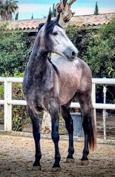 Dieser wunderschöne und vielversprechende Hengst, möchte gern in sein FOR EVER HOME vermittelt werden. 🏡 Er überzeugt nicht nur durch sein traumhaft schönes Erscheinungsbild, sondern vor allem durch seine unglaublich elastischen und schwungvollen Bewegungen. Ein zukünftiger Superstar,bei entsprechender Förderung. Er kommt aus allerbester Haltung und ist bestens sozialisiert. Ein Diamant zum selber schleifen. Sehr selten ist es,in diesem Alter,ein Pferd zu finden,was noch nicht gearbeitet wurde. Er konnte voll und ganz ausreifen, und ist nun bereit, seine Karriere zu beginnen. Er ist im Umgang vollkommen brav und anständig, und man kann beginnen, ihn schonend an die Anfänge seiner Ausbildung heranführen. Brav läuft er am Führstrick und hat einen mega tollen Charakter ohne Hengstmanier. Wer ein zukünftiges, hochqualitatives Nachwuchspferd sucht, ist bei ihm goldrichtig. Selbstverständlich hat er volle Papiere der ANCCE und vielleicht ist auch eine Körung möglich. Er verfügt über aktuelle Röntgenbilder ohne Befund. Wem dieses Bewegungsgenie gefällt, meldet Euch bitte mit Telefonnummer,damit ich schnellstmöglich Kontakt zu Euch aufnehmen kann. Unter gewissen Umständen muss die Mehrwertsteuer dazu gerechnet werden. Jedoch wird das einzelfallabhängig immer erst gründlich geprüft. Wir verfügen über eine sehr große Auswahl an verschiedenen Pferden, vom Fohlen bis zum Gran Prix Pferd.