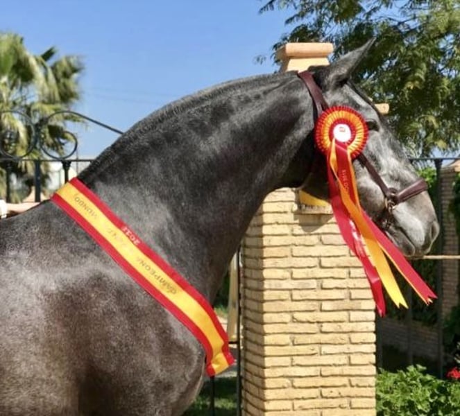 Excelente potro de 3 años, hijo de campeones del mundo. Su padre es Romero de Trujillo , el semental más completo y premiado de la historia del PRE en morfológia, movimientos y doma clásica, Reproductor Mejorante !! Su madre es ZAHARA de Millán , Campeona del Mundo joven en 2018 e hija de Simpático de Millán III: Reproductor Mejorante !! Oportunidad única de adquirir un potro impresionante para doma y futuro semental !!