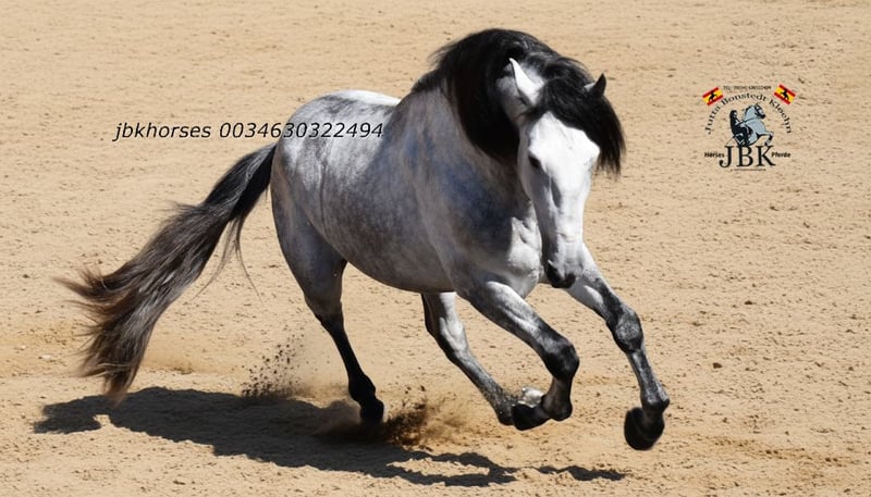 PRE étalon Abogado Arcos est né le 16.05.2021. Il a grandi en troupeau, a été mis en box à l'âge de 3 ans et est maintenant monté de manière solide et sûre dans les allures. Il connaît également de petites sorties aux alentours. Un cheval qui travaille de manière solide et sérieuse. On ne peut attendre de lui aucune bêtise. Car son nom même évoque la souveraineté. Abogado est un petit-fils de l'étalon Elite EDUCADO X de l'élevage Guardiola, Miura, Novales, Bariain, Muñoz et Terry complètent parfaitement la lignée.