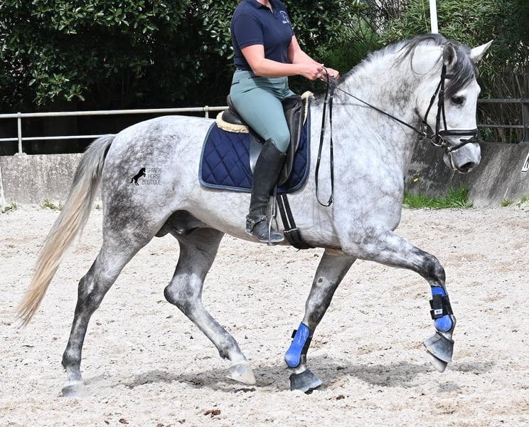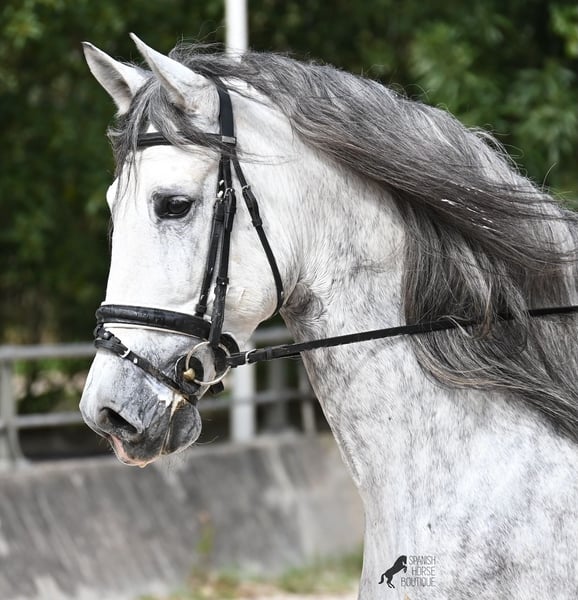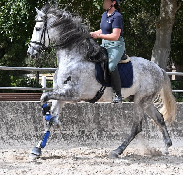 Dieser 2021 geborene PRE Hengst (Andalusier mit Rassenachweis der ANCCE) ist ein Bilderbuch-Spanier! Schön barock, wallende Mähne, spanischer Esprit, waches aber sanftes Auge und ein graziler Kopf. Dazu bewegt er sich noch unfassbar gut, er fliegt wirklich nur so über den Platz, wie ich es selten bei einem Spanier gesehen habe. Das kommt nicht von ungefähr, denn er ist ein Sohn des weltbekannten Dressurmeisters ROMERO DE TRUJILLO! Der Papa räumt alle Schleifchen und Preise ab, die es in der Dressurwelt des PRE zu ergattern gibt und dieser sein Sohn, hat auch großes Potenzial, um dressurambitionierte Reiter glücklich zu machen. Dazu kommt noch JUDIO VII als Großvater, der bis heute einer der wichtigsten Hengste der Rasse war und vermutlich für immer unvergessen bleibt. Daher kommt dieses klassische-spanische Exterieur und das Leuchten in den Augen, denn die Judios sind weltklasse Pferde, auch in der Morfologie und sehr sehr beliebt in der Welt des PRE. Der junge Mann misst schon stattliche 167cm (wächst noch!) und da es dem Züchter wichtig ist, dass seine Pferde langsam heranwachsen und nicht überfordert werden, war er lange in der Hengstherde auf vielen Hektar Land und ist aktuell basis angeritten. Er ist sehr arbeitssam, man braucht nur etwas Feingefühl sein Feuer zu zügeln,und noch tut er sich etwas schwer, immer zu 100% aufmerksam zu sein, was aber absolut normal ist, für ein Jungpferd mit Energie. Ohne Zweifel ist dieser Hengst eine hervorragende Option für ambitionierte Reiter die das spanische Pferd und die Dressur lieben, sowie für Züchter! Er ist bereits gekört, hat aber noch nicht gedeckt. Sollte Hengsthaltung nicht möglich sein, besteht die Möglichkeit der Kastration vor Ort. Preis der Qualität entsprechend! Aktuell steht er auf Mallorca! Videos und Abstammung gerne auf Anfrage. Ein Top Pferd zu einem sehr fairen Preis. Gerne organisiere ich vor Ort eine AKU, Beritt, Transport oder auch ihre Reise, sollten Sie persönlich zum Anschauen kommen. Details dazu gerne auf meiner Seite oder im Gespräch. Saludos aus Spanien