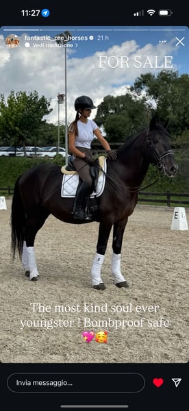 ✨ PRE Horse for Sale ✨ Imposing Purebred Spanish Horse, 4 years old, with a height of 1.70 m. This horse has exceptional nobility, is completely calm, gentle, and easy to ride, qualities that make him an ideal companion for all types of riders, from amateurs to the most demanding. 🔹 Age: 4 years 🔹 Height: 1.70 m 🔹 Character: noble, serene, and balanced 🔹 Riding: comfortable, easy, and safe A horse that combines the beauty, elegance, and functionality typical of the PRE, with an exemplary temperament, perfect for enjoying both in the arena and on outdoor rides. 📩 For more information, please send a private message.
