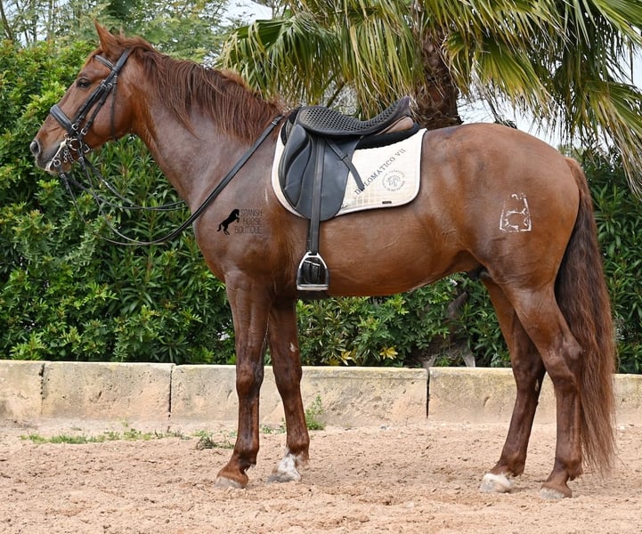 Ce cheval PRE né en 2020 (Andalou avec certificat de race délivré par l'ANCCE) est une véritable merveille à bien des égards ! Il ne fait aucun doute que ce qui frappe d’abord, c’est sa beauté à couper le souffle, accentuée par la couleur cuivrée de son pelage et son esprit vif. Mais derrière cette façade magnifique, il y a beaucoup plus à découvrir. Son pedigree est exceptionnel, puisqu’il est fils du multiple champion du monde Fer Bonachon de Eda, et donc petit-fils du célèbre Fer Bago. Son ascendance inclut non seulement le champion du monde et la ligne FERRERO, mais aussi Monis, Marin Garcia, Yeguada Militar, Guardiola et Bohorquez ! Côté maternel, il possède des ancêtres bai, alezan et noir, ce qui le rend également très intéressant en tant que reproducteur, car la majorité des descendants de Bonachon ont tendance à hériter de la couleur grise de leur père, et il transmet cette ligne de haute qualité, avec une meilleure chance de produire des poulains colorés. Il est stallion agréé et a déjà produit une pouliche alezane, ce qui confirme que, en plus de son pedigree, sa couleur le rend très attractif en tant que reproducteur. En main, c’est un véritable gentleman. Bien qu’il ait déjà été utilisé pour la monte, il n’est pas du tout chaud ou excité. Si la possession d’un étalon n’est pas envisageable, une castration sur place reste une option. Les cavaliers ambitieux prendront certainement plaisir à le monter, car il apprend vite, donne tout sous la selle et s’épanouit pleinement. Il ne montre aucune mauvaise habitude en selle et fait preuve d’une endurance remarquable. Alors que d’autres PRE s’essoufflent après 15 minutes, lui, il se libère et donne le meilleur de lui-même. Son attitude est également idéale, ce qui se reflète dans son tempérament équilibré. Il peut être laissé en paddock toute la journée, puis rentré dans un box la nuit pour se reposer. Il est monté trois fois par semaine, principalement en extérieur. Il est un partenaire fiable en terrain, courageux et sans peur, que ce soit seul ou en compagnie. Qu’il passe des machines de construction ou des camions, il reste calme et continue sa marche ! Les longues randonnées lui conviennent parfaitement, où il peut vraiment montrer son endurance. En carrière, il est très concentré, maîtrise les épaules en dedans dans toutes les allures et possède déjà un bon équilibre pour de grandes rênes en galop extérieur. En main, il apprend actuellement le pas espagnol. C’est un magnifique cheval, affectueux et bien éduqué, doté d’un grand potentiel dans diverses disciplines, qui ravit à la fois l’œil et le cœur ! Son prix est conforme à sa qualité. Sa taille actuelle est de 1,60 m. Il est actuellement en Mallorca ! Des vidéos et la généalogie sont disponibles sur demande. Je peux également organiser sur place une échographie, une castration, un débourrage, un transport ou votre voyage, si vous souhaitez venir le voir en personne. Plus de détails sur mon site ou lors d’un échange. Salutations depuis l’Espagne