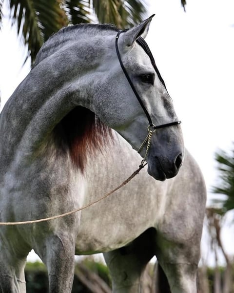 Morphologically spectacular horse, with a unique beauty, currently the horse is entire with a very noble character and easy to handle. A horse that stands out, with quality movements in the arena. It is also suitable for trails. Clean x-ray and free of piro.