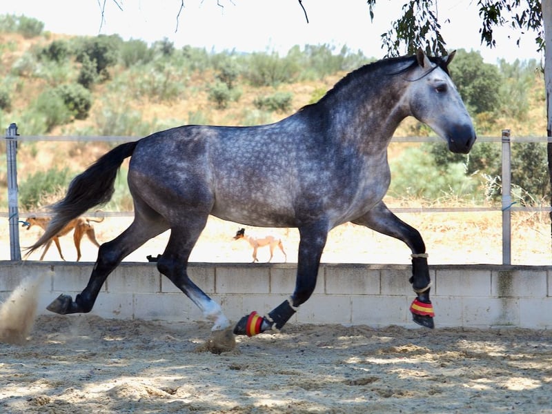 Wir präsentieren unser beeindruckendes spanisches Pferd, geboren 2019, mit einer Größe von 178 cm. Seine perfekte Morphologie und seine angeborene Eleganz machen ihn zu einem wahren Show-Champion, der mit keinem Konkurrenten zu vergleichen ist. Ein einzigartiges Exemplar in seiner Klasse, das bei jedem Schritt hervorsticht. Er wird auf einfachem Niveau geritten, zeigt aber die Fähigkeit, die höchsten Ebenen der Dressur zu erreichen.