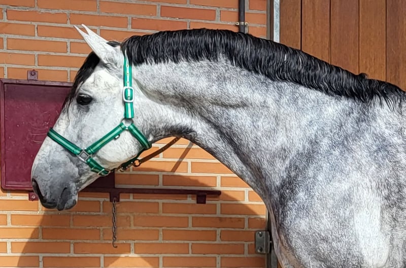 Stalle NR Romerito ha il pacchetto completo. È molto affettuoso, bello da vedere e ha davvero talento per lo sport. Con un'altezza al garrese di 1,75 m è anche molto interessante per il cavaliere alto. Ha un buon passo, un trotto ampio e lavorabile e un fantastico galoppo. È addestrato a livello Z, conosce tutte le figure laterali e fa un cambio corretto da entrambi i lati. Romerito ha anche molta esperienza nell'andare a cavallo all'aperto e conosce tutti i tipi di traffico. Sarebbe fantastico per un cavaliere che vuole combinare sport e tempo libero. Romerito è stato allevato dal noto allevatore "Yeguada El Romerito". Questo allevatore è conosciuto per i suoi cavalli sportivi corretti, in cui carattere e movimento sono al primo posto. Suo padre proviene dal noto allevatore "Yeguada de Trujilo" e ha allevato diversi buoni cavalli sportivi e da riproduzione. Nella linea superiore trovi molto sangue di escalera. ✈️ Romerito si trova in Spagna, a 20 minuti dall'aeroporto di Madrid.