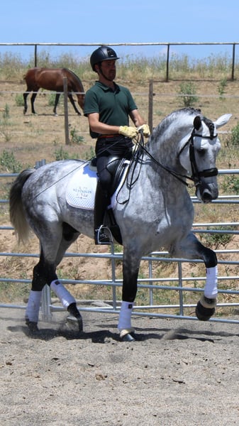 NL Stables NR Romerito heeft het totaalpakket. Hij is heel lief, mooi om naar te kijken en heeft echt talent voor de sport. Met zijn stokmaat van 1.75m is hij ook zeer interessant voor de lange ruiter. Hij heeft een goede stap, een ruime, werkbare draf en een fantastische galop. Hij is Z-niveau opgeleid, kent alle zijgangen en maakt een correcte wissel aan beide zijden. Ook heeft Romerito veel ervaring met buitenrijden en kent hij alle soorten verkeer. Hij zou geweldig zijn voor een ruiter die sport en recreatie wil combineren. Romerito is gefokt door de bekende fokker "Yeguada El Romerito". Deze fokker staat bekend om zijn correcte sportpaarden, waarbij karakter en beweging voorop staan. Zijn vader komt van de bekende fokker "Yeguada de Trujilo" en heeft meerdere goede sport- en fokpaarden gefokt. In de bovenlijn vind je veel escalera-bloed. ✈️Romerito staat in Spanje, op 20 minuten van de luchthaven van Madrid.