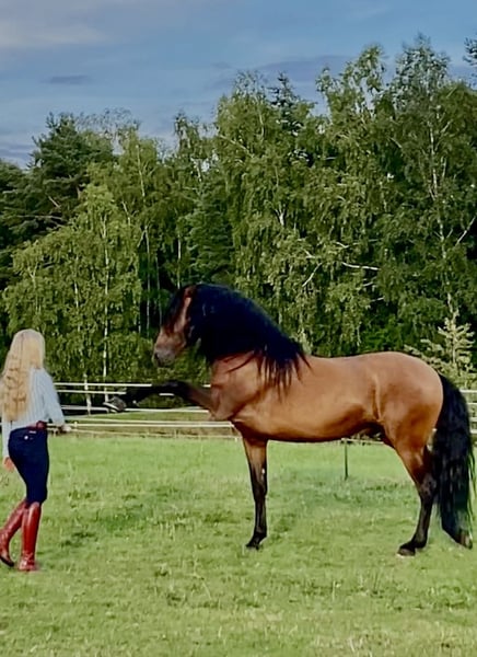 With a heavy heart, I am seeking a new, loving home for my PRE stallion Tiburon Del Noble. Due to professional changes, I am unfortunately no longer able to provide him with the time and training he deserves. Tiburon was born in 2018 and has been with me since December 2022. During this time, I have carefully and sensitively trained him myself. He is not at all mareish in daily handling, always respectful, clear-minded, and simply a true treasure – a horse you can trust from the very first moment. He is versatile in training and works enthusiastically across various disciplines: - Liberty work, ground work, and dressage training (piaffe, passage, extended trot…) - Lateral movements in all gaits - Spanish walk, compliment - Travers in trot and canter - Safe riding alone and in groups in the terrain - Trained with water bit I see great potential in Tiburon for further dressage development, both for shows and in working equitation. His charisma, conformation, and correct exterior would also make him a strong candidate for licensing and inspection, and he is, in my opinion, a very interesting prospect for breeding. Currently, he is kept in a paddock box, regularly turned out to pasture, and appears calm and content there. He is an exceptionally handsome stallion with a commanding presence, elegance, and a wonderful, people-oriented character. Tiburon Del Noble is not a “cookie-cutter” horse, but a partner with quality, soul, and future potential. I wish for him a place where he can continue to be supported, appreciated, and loved. If you are genuinely interested, I look forward to hearing from you personally.