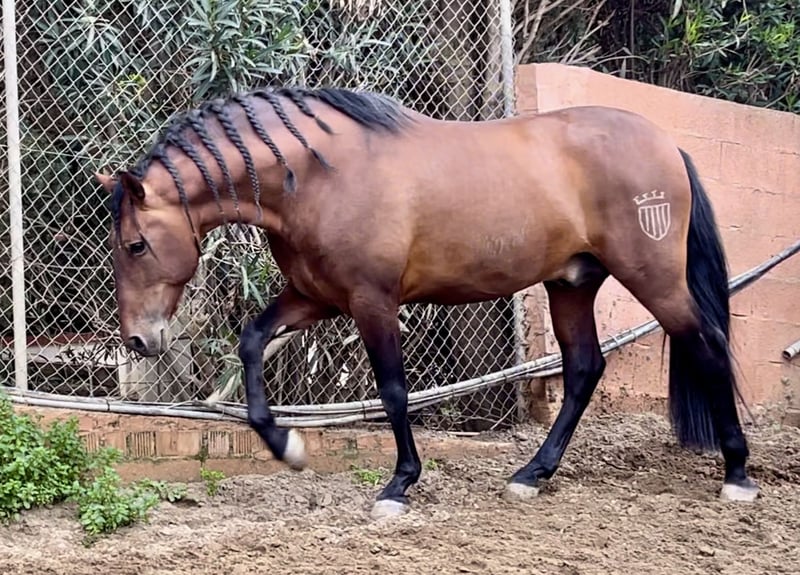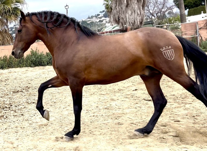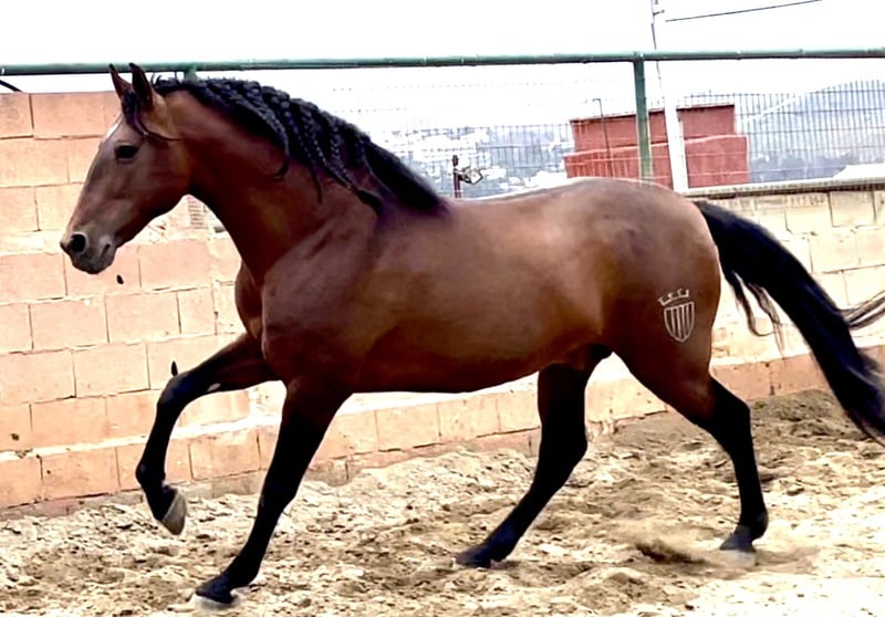 For sale: beautiful PRE horse! We present our purebred Spanish stallion, born in 2016. This magnificent specimen has a beautiful chestnut coat and an impressive height of 168 cm. Ideal for leisure, he is perfect for those seeking a noble and elegant companion. His temperament is balanced and friendly, making him an excellent choice for both experienced riders and those who are just starting in the equestrian world. Don't miss the opportunity to meet this exceptional horse. Contact us for more information and to schedule a visit!