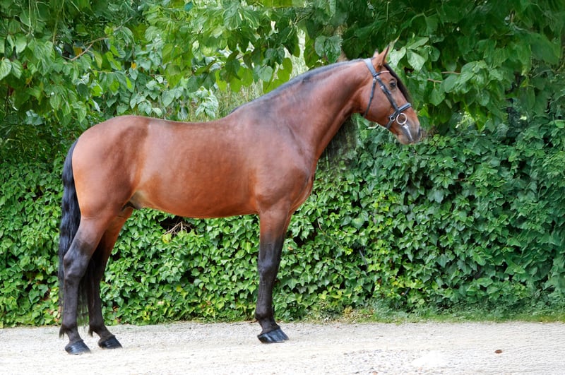 Très beau PRE baroque, polyvalent, facile pour cavalier amateur. Allures très correctes, caractère calme et tranquille. Travail de deux pistes, début changements de pied. Extérieur ok. Peut être castré chez nous, si nécessaire Radios propres