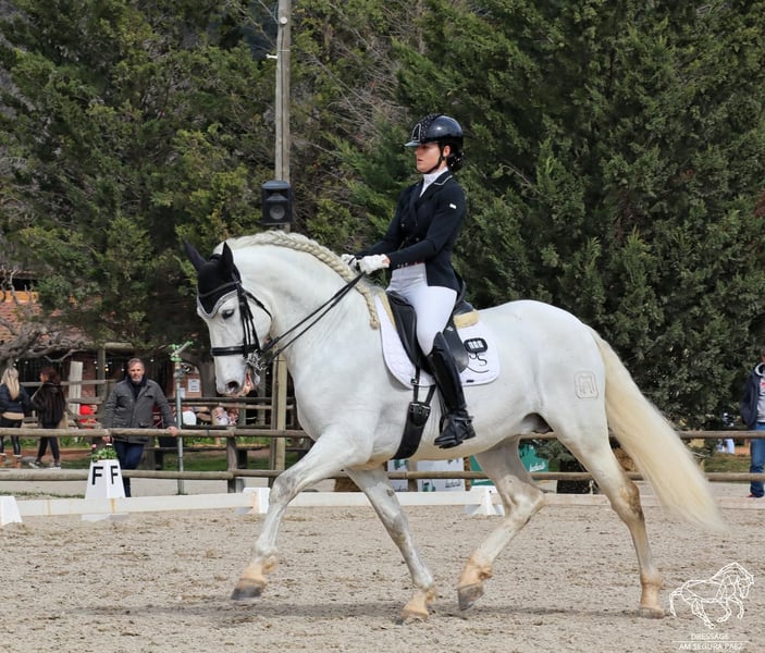 Presenting a spectacular 9-year-old Purebred Spanish Horse (Pura Raza Española) with extensive competition experience since the age of four. Currently competing at the Classical level, he regularly and confidently performs San Jorge exercises. He is a very noble horse with an exceptional temperament, easy to ride and handle. Accustomed to going out into the fields alone or with company, he behaves with complete confidence and calmness. He has a striking presence, imposing stature, and displays qualities of elegance. Suitable for riders of all levels, whether for those seeking to compete or for those who wish to enjoy a serious, experienced horse at home. A complete horse with heart, nobility, and experience.