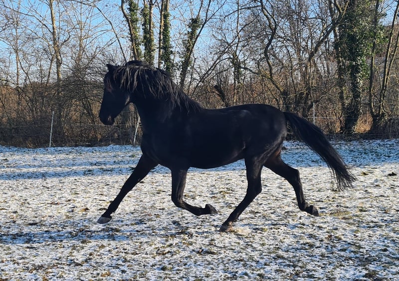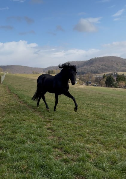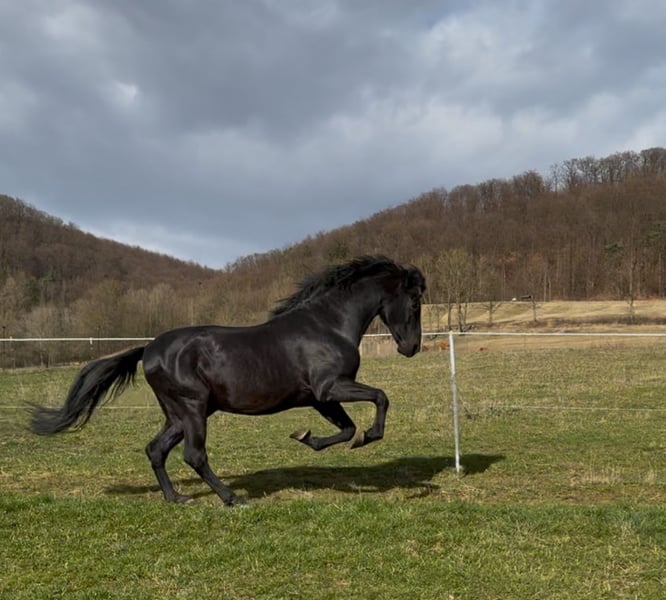 Dieser einmalige lackschwarze Cartujano-Hengst mit Zertifikat steht für wenige ausgewählte Stuten (PRE, gerne Cartujano) zum Decksprung zur Verfügung. Viento ist von außergewöhnlicher Schönheit und Eleganz und trägt das historische Erbe der edlen Cartujanos. Er ist temperamentvoll, intelligent und sehr präsent. Dem Menschen gegenüber ist er stets sanftmütig und zugewandt.