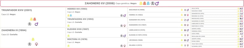 Sichern Sie sich die außergewöhnlichen Qualitäten unseres edlen calificado gekörten, M.F Escalera Zuchthengstes Zahonero XV für Ihre Zucht. Mit seiner beeindruckenden Abstammung, seinem sanften Wesen und seiner eleganten Bewegung vererbt er Schönheit, Intelligenz und Rittigkeit in Perfektion. Seine Nachkommen überzeugen mit harmonischem Exterieur, ausdrucksstarken Gängen und bester Lernbereitschaft. Zahonero XV: 100 % M.F. Escalera, genetic black, CALIFICADO gekört! (Tiefgefriersamen zum Verkauf!) Zahonero XV ist ein ungemein typvoller Hengst mit einer ganz besonderen Ausstrahlung. Er verfügt über ein korrektes sportlich-edles Exterieur. Seine hervorragende Rittigkeit wird betont durch einen überaus raumgreifenden Schritt, einen kraftvollen Trab und eine große Aufwärtsgaloppade. Nicht umsonst absolvierte dieser Calificado Hengst seine Körung mit Bestnoten. Weltweit existieren in dieser Klasse nur zwei schwarze Hengste, gezüchtet vom weltberühmten Gestüt Maria Fernanda de la Escalera. Sein hoher Reitkomfort, seine erstklassige Genetik und sein traumhafter Charakter machen ihn zu einem Tophengst der PRE-Zucht. Ein großartiges Dressurpferd das durch sportliche Leistung hervorsticht und in den Funktionalitätsprüfungen brilliert. Züchterisch gesehen ist Zahonero XV, Sohn des legendären, in den USA lebenden Triunfador XXIV, ein Garant für Leistung und Schönheit. Triunfador XXIV brachte bis jetzt 47 gekörte Nachkommen hervor, wovon 14 mit Gold ausgezeichnet und vier Hengste Calificado gekört wurden. Er war drei Mal Top-5-Sicab-Finalist und Goldmedaillengewinner in Sevilla und Jerez. Sein Großvater Hebreo XIX, Multi-Goldmedailliengewinner, SICAB Finalist und Sohn des legendären Macanuo III, ist ein Escalera-Hengst, der in die Geschichte einging. Zahoneros Großmutter Triunfadora XIV, eingetragen im „Book of Merits“, kann auf viele SICAB-Finalisten als Nachkommen verweisen. Sie ist die Tochter von Nadadora VIII, welche 1991 und 1994 SICAB-Siegerstute von Spanien sowie zweimal spanischer Sicab-Champion in der Bewegung und siebenmal Sicab-Goldmedailliengewinnerin wurde, mehr als je ein anderer P.R.E. zuvor in der Geschichte. Zahonero wurde in Spanien mehrmals mit Gold- und Silbermedaillen ausgezeichnet und war u.a. mehrmals Teilnehmer des SICAB · Salón Internacional del Caballo PRE in Sevilla. Jetzt bestellen und Ihre Zucht auf das nächste Level heben! Bei Interesse oder Fragen kontaktieren Sie uns gerne.