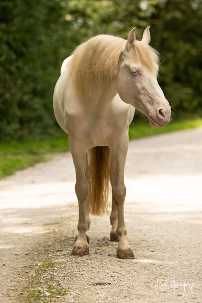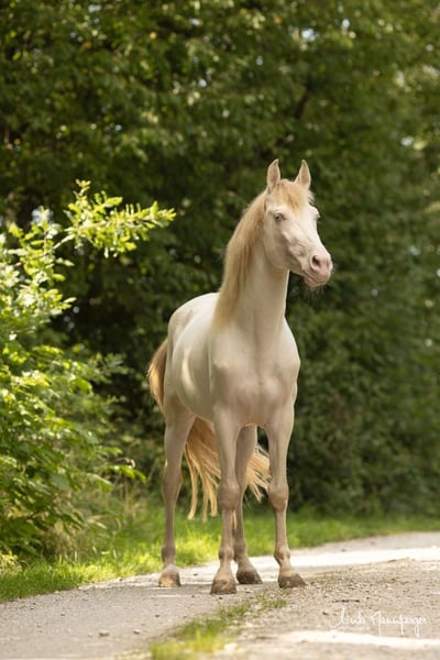 This year, Curro Torreluna is available to foreign mares for mating on the hand. Curro our little charmer and prince has the beautiful color Perlino. A mega thick and now much longer mane. The pictures are still from last year where he came to us from Spain. As soon as spring arrives, we will take new current photos of him. Curro is the perfect PRE. Square, mega neck and great stallion head, mega hanging, both mane and tail, stable hooves. He can gather incredibly great, climbing is for a little something, even the Capriole he does in his box, when he is particularly happy, because the mares shred over the paddock. Actually, a horse can either climb well or the Capriole, Curro is both extremely easy. Last year we also had to realize that he has no problem jumping from a standing position over 1.60m high panels and that with a height of 1.58. Actually, PRE are not so suitable for spinning, but with Curro this is also a bit different than normal. His character is a dream. A mega cuddly bear, super sweet and decent. Also when covering on the hand a treasure. With other stallions next to him in the box completely relaxed. He reacts calmly to new things. In the terrain he is also decent. Absolutely clear in the head. But learns super easy. A real pleasure! In addition, he has been completely x-rayed, no findings. So if you want a lovely, cuddly, versatile foal, with a great mane in a special color, Curro is just right.