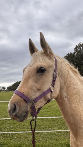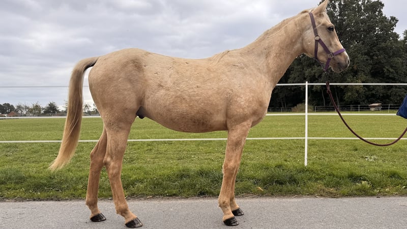 For sale: Two-year-old Palomino gelding of the Quarab breed – Poco I am offering a beautiful two-year-old Palomino gelding named Poco, of the Quarab breed. The horse holds an AICQA certificate, confirming his excellent lineage and good health. Poco is regularly vaccinated, dewormed, and saddle-trained, ensuring his well-being and good condition. Raised in a free-range herd, he does not kick or bite. He has recently begun work with a saddle, making him an ideal candidate for further training. He is very social and enjoys being around people. I am happy to provide additional information via phone or message for interested parties.