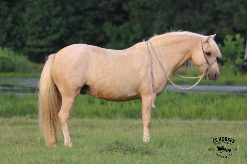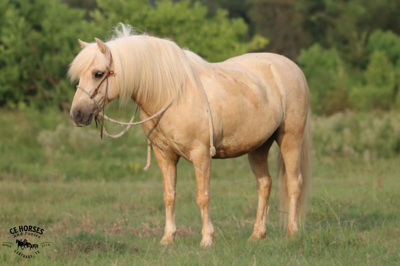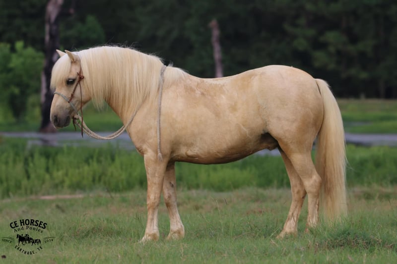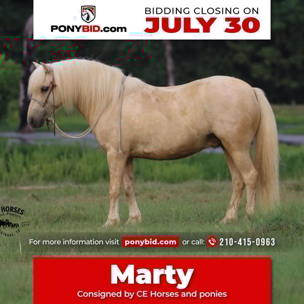 ♦️ THE LITTLE HORSEMAN'S SELECT ♦️ Happening now thru WEDNESDAY | JULY 30TH - Available EXCLUSIVELY on PonyBid's website! For more details and to register visit: www.Ponybid.com CONSIGNOR CONTACT: CE Horses and ponies 210-415-0963 LOCATION: Carthage, TX BREED: Quarter Pony REGISTERED: No COLOR: Palomino HEIGHT: 12.2 AGE: 12 GENDER: Gelding “Marty” is a 12 yr old palomino gelding standing at a stout 12.2 hands tall and is handmade and as flashy as you can find for little cowboys looking for their next mount to go use with mom and dad. Marty is as ranchy as they get. He has seen all the sites on a busy ranch and has been used for every chore on our place . Marty has been hauled to playdays and youth rodeos all over Texas ! He is unfazed by tractors, side by sides, cattle, cats, dogs and feral children dragging him around like a dog. He will stay gentle in any situation he’s stuck in, whether the kids decide to bring him in the house , drag him to the pond or jump off him into the pool or rope the dummy in the yard for hours . Marty is a gentleman on the ground in every way. He has also been trail rode through swampy ground, thick briars, over logs and through the creeks and ponds and he’s stays sure footed and level headed. Marty would work for leadline kids just starting out or for bigger kids ready for a step up pony to go rodeo on or use out on the ranch. He is heavy made and big enough for mom and dad to keep tuned up. Marty has the smoothest little slow lope and a big stop! This is a really cool little gelding that anyone would be lucky to own. Located in Carthage Tx and we can help arrange shipping all over ! Call 210-415-0963 with any questions.