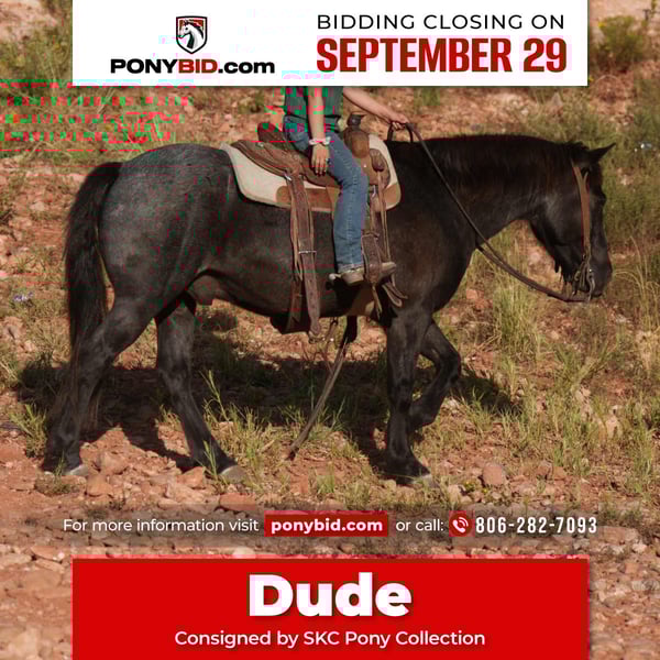 🐴 𝒕𝒉𝒆 𝐅𝐀𝐋𝐋 ℙ𝕆ℕ𝕐 𝑺𝒑𝒆𝒄𝒕𝒂𝒄𝒖𝒍𝒂𝒓🐴 Happening now thru MONDAY | SEPTEMBER 29th - Available EXCLUSIVELY on Ponybid's website! For more details and to register visit: www.Ponybid.com CONSIGNOR CONTACT: SKC Pony Collection 806-282-7093 LOCATION: Canyon, TX BREED: Quarter Pony REGISTERED: No COLOR: Blue Roan HEIGHT: 13 AGE: 5 GENDER: Gelding Dude is the real deal—big hipped, big eyed, and full of heart. This handsome pony has carried a real job in the Texas Panhandle, working in the feed yard, handling cattle outside, and even dragging big calves at spring works. Yet, he’s quiet and kind enough for the littlest kids to learn on. He’s one-hand broke, smooth, forgiving, and patient as can be. Our kids have shown him at local events and fairs, ridden him English with a soft frame, and enjoyed his stylish jog, easy lope, little stop, and turn around. He’s as versatile as they come. Dude is seasoned and safe to haul anywhere—traffic, fireworks, or machinery don’t bother him, and he crosses water and obstacles with ease. He’s been ridden through the Palo Duro Canyons and Canadian River, and he’s the one the kids climb on bareback to ride into town for sodas and candy. Gentle, sweet, and packed with charm, Dude is the kind of pony that builds confidence in every child and is always ready for the next adventure.