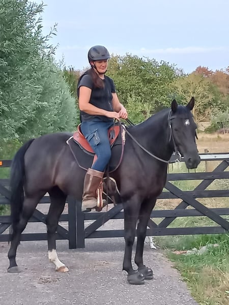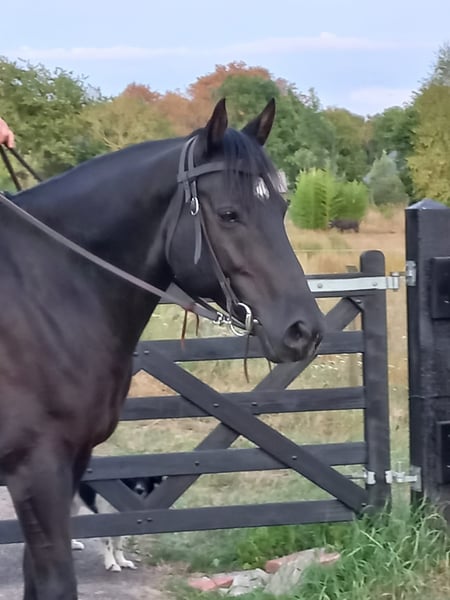 More & better photos/videos will follow soon... Ozzie was bred by me, out of my polo mare (Criollo Thoroughbred mix, no studbook) and the quarter stallion Don Quixote Escapes (quarter horse # 3936276, owned by Eifel Gold Ranch, breeding certificate and more information about the father available, including photos and performance record). He has been under saddle for a few years now (I started his training in early 2022) and is a sweet all-round riding and cuddle horse to enjoy for a lifetime. Unfortunately, due to a lack of time and interest, I am unable to give him what he needs and to develop his potential. He is not exceptionally schooled in dressage, but the basics are there. He has been trained bitless but is now mostly ridden with a bit, so he is familiar with both. He has experienced many different environments during the numerous trail rides we've taken (beach, forest, village, dunes, water, trekking, etc.). He is traffic-safe, but not bombproof, yet calm in his mind. He has participated in cowboy trail training and some basic western riding, which was a while ago but can easily be picked up again. He is (still) not suitable for inexperienced or insecure riders; he may occasionally do a (small!) buck to release tension if things go too fast or may kick out with his hind legs if too much pressure is applied while he finds something exciting. He might bolt if he is truly startled, but he does not panic easily and certainly does not run away! If you lose your balance as a rider when he is startled, he does not take advantage of that or get extra scared, but rather allows you to regain your balance. He lives with me 24/7 in a group with pasture and a large shelter and is looking for a similar good place. He is good with the farrier, on the trailer, and in handling, perfectly healthy, has been to the dentist every year (symmetrically aligned), and is regularly trimmed.