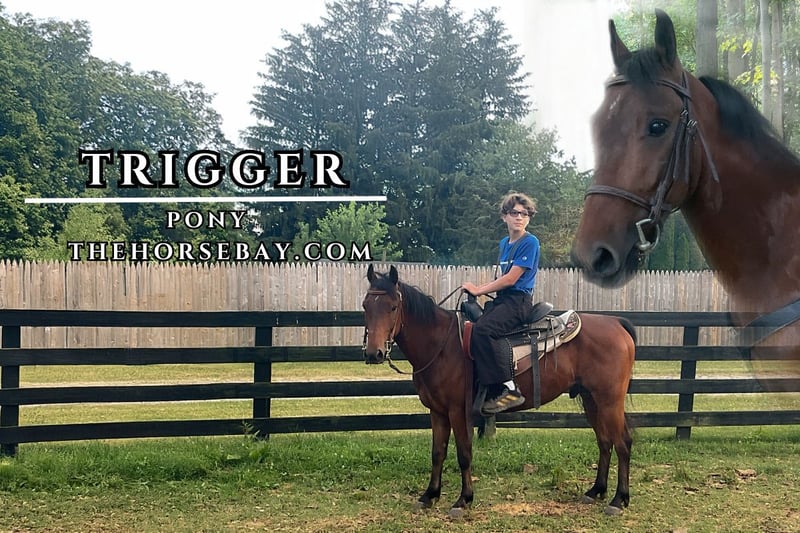 OPEN BIDDING ON THEHORSEBAY,COM. SALE ENDS ON 08/20 @ 4:20PM CT. More information is available on the website, including an UTD vet inspection, Coggins, video, images, and the owner's contact information to ask questions, request information, or make arrangements to come to visit. Trigger is the perfect step up for any kid wanting to go to the next level. He is super game and always ready to go. We don’t recommend him for beginners or small children only because of his spirit. He is broke and safe in every way but always ready to do the job. Our 14-year-old son mostly rode him and had a lot of fun; he is currently jumping 2’ 8” with both the pony and the boy having no experience in this field; we think he could be a hunter jumper and think Trigger would enjoy that. Trigger will ride out alone or in a group and pastures well with other horses and farm animals. The only thing we have to call on him is he will crib if kept in the stall without a cribbing strap; he doesn’t do it when turned out in a large field. Trigger rides English, western, or bareback.