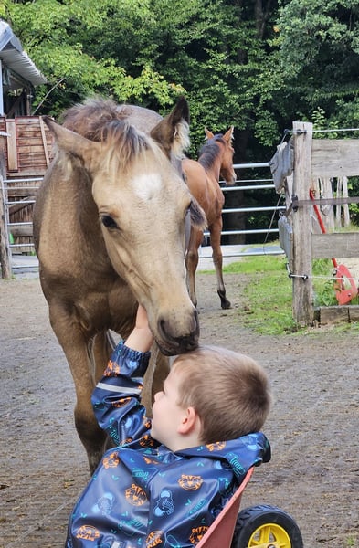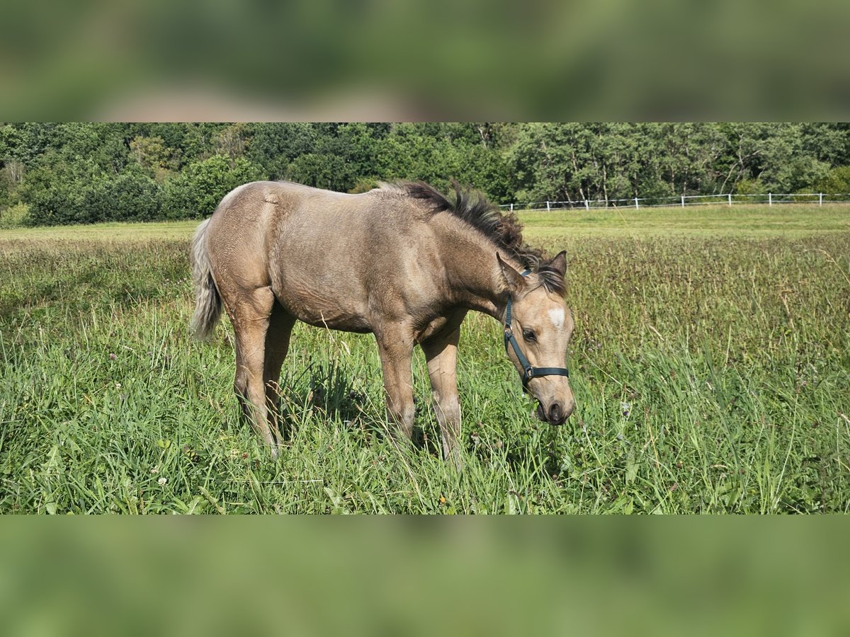 PLATZ VOR PREIS! Die kleine Willow sucht wegen Reduzierung ein Traumzuhause. Sie zeigt sich jetzt schon sehr selbstbewusst und neugierig. Eine echte Zuckermaus. Egal ob für den späteren Sport, Freizeit oder für die Zucht. Ihre Mutter ist ein deutsches Reitpony und ihr Papa ist als Pinto eingetragen ust aber abstammungstechnisch auch deutschesReitpony. Sie ist ein Buckskin hat ein tolles Gangwerk und ein schönes Exterieur. Eher ein ruhiger Typ. Geboren am 10. Juni 25. Sie lebt bei uns im Offenstall in einer gemischten Herde mit ihren Geschwistern. Ihr Endmaß liegt bei ca. 145 cm. Sie bekommt Papiere vom ZSSE. Wer das Besondere sucht sollte sie sich ansehen. Sie kann gern noch bis zum Frühjahr zur Aufzucht bei uns bleiben. Weitere Infos und Videos gern auf Anfrage. Bitte nur erst geneinte Anfragen. Es fällt uns schon schwer genug sie abgeben zu müssen.