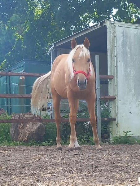 Babypferd – Quarterhorse Stute, geboren 2024 Zum Verkauf steht eine junge, reinrassige Quarterhorse Stute, geboren im Jahr 2024. Die Stute ist noch roh und konnte bisher keine Ausbildung genießen – somit bietet sie die perfekte Grundlage für eine individuelle Förderung und Ausbildung nach eigenen Vorstellungen. Es handelt sich um ein liebes, dem Alter entsprechend neugieriges Jungtier mit viel Entwicklungspotenzial. Durch ihre ruhige Art eignet sie sich ideal für erfahrene Pferdemenschen, die Freude daran haben, ein Pferd von Grund auf aufzubauen. Details: • Rasse: Quarterhorse (reinrassig, ohne Papiere) • Geschlecht: Stute • Geburtsjahr: 2024 • Stockmaß: ca. 1,50 m – 1,55 m (geschätzt im Endmaß) • Ausbildungsstand: roh • Abstammung: nicht bekannt / ohne eingetragene Papiere • Besonderheit: Nabelbruch vorhanden Der Nabelbruch beeinträchtigt die Stute aktuell nicht im Alltag, sollte jedoch bei weiterer Planung berücksichtigt werden. Die Stute wächst artgerecht auf und kennt den Umgang mit Menschen. Weitere Informationen gerne auf Anfrage. Bei ernsthaftem Interesse freuen wir uns über eine Nachricht.